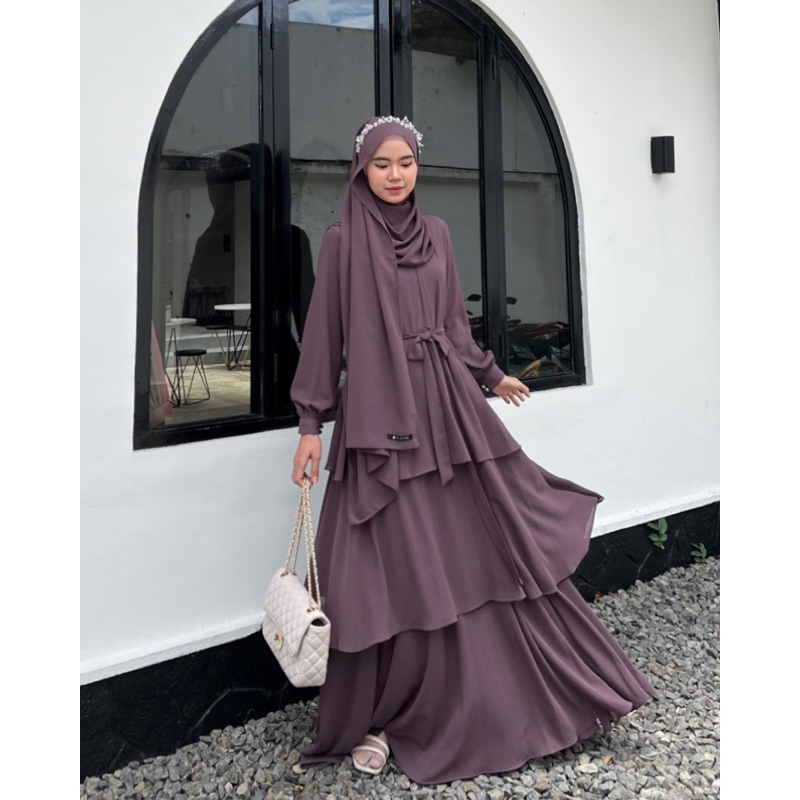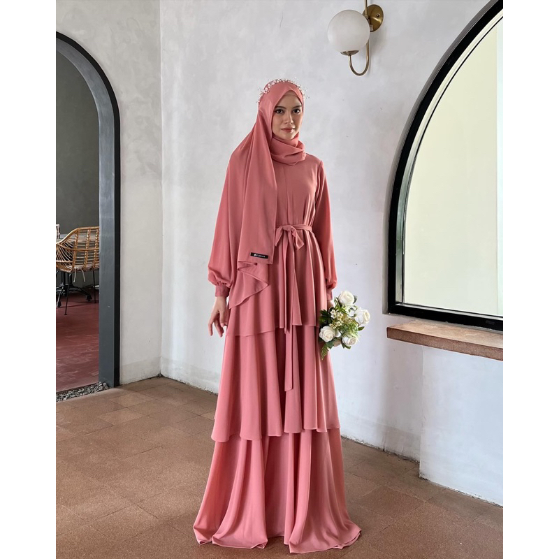 DRESS GAMIS LEBARAN 2288 Elmiza - Maureen Dress Bahan Ceruty Baby Doll Gamis Wanita Muslimah Terbaru Kondangan Lamaran Akad
