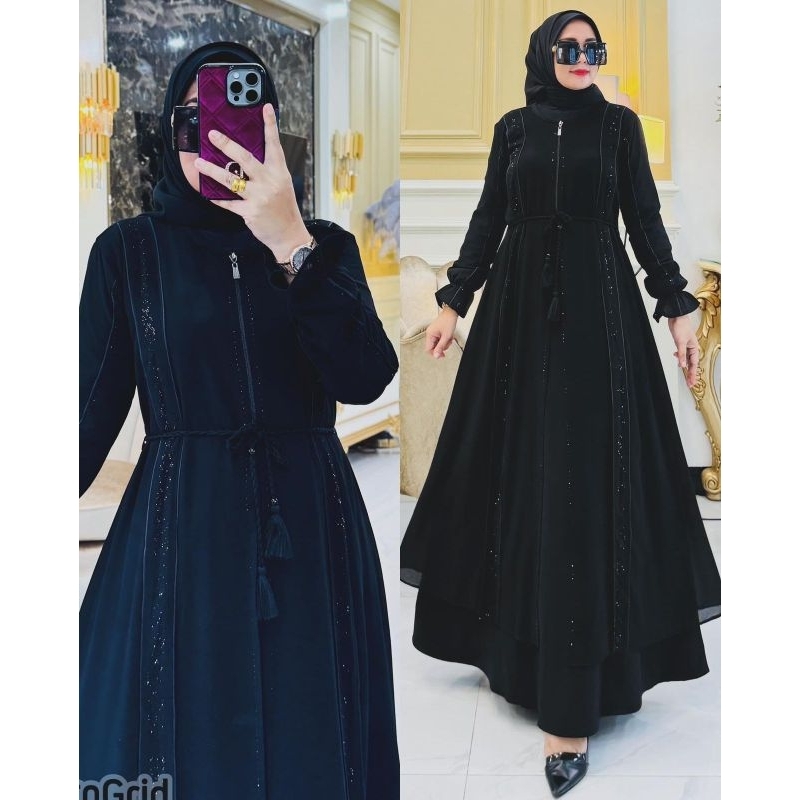 DRESS GAMIS LEBARAN 2374 [ FREE JILBAB ]Busui Abaya Turkey Full Black Senada AnjaniGamis Hitam Elegan