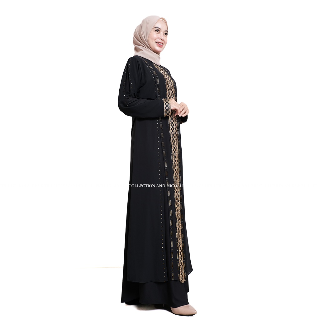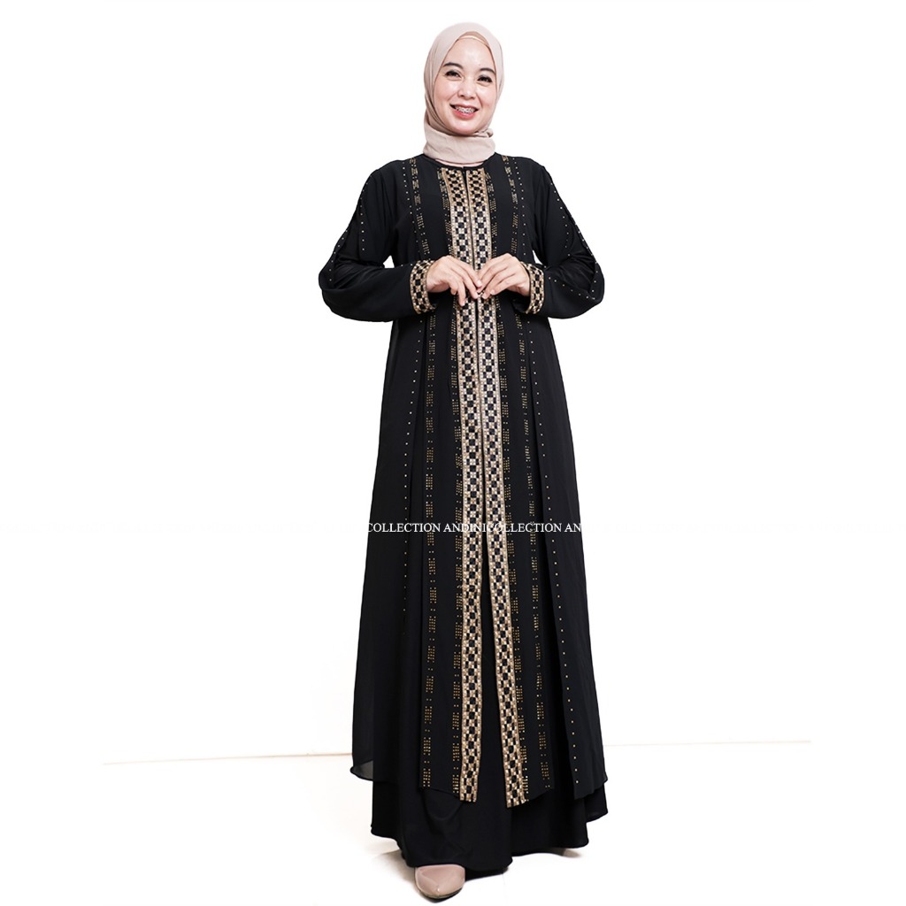 DRESS GAMIS LEBARAN 2317 Andinicollection Abaya Turkey 476 Amarta Hitam Putih Dewasa Muslim Bordir dan Payet Mewah