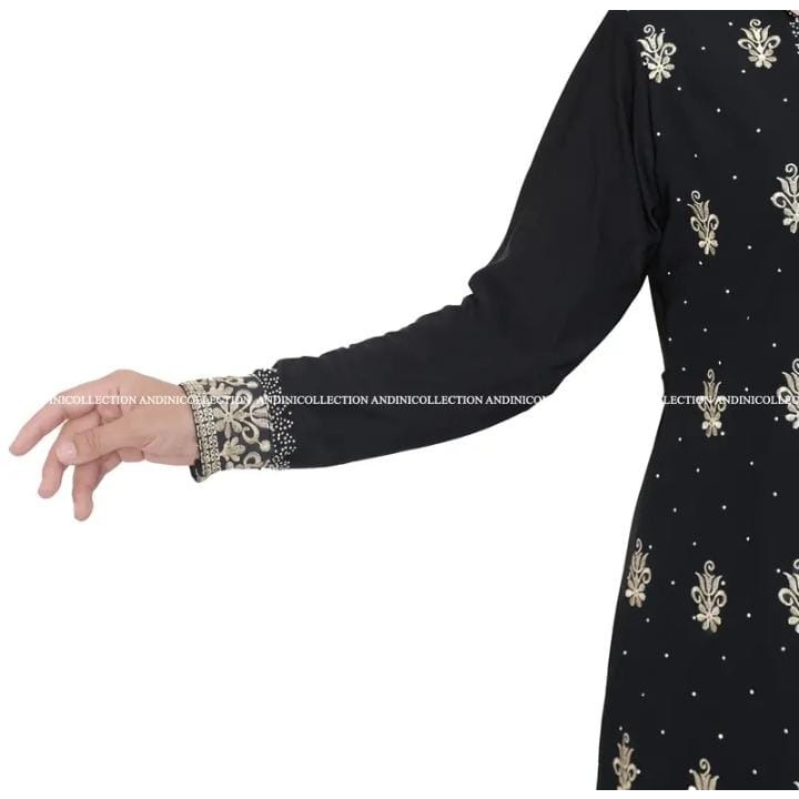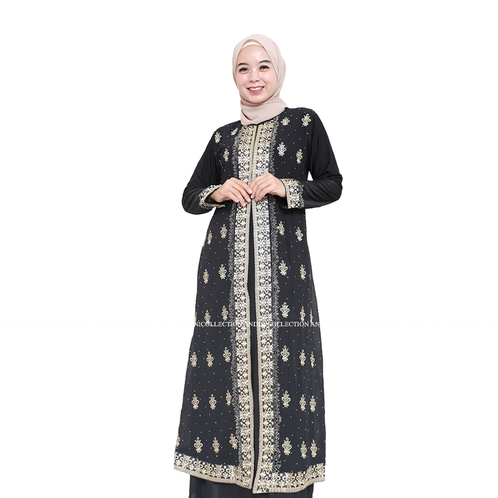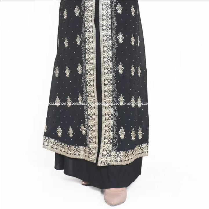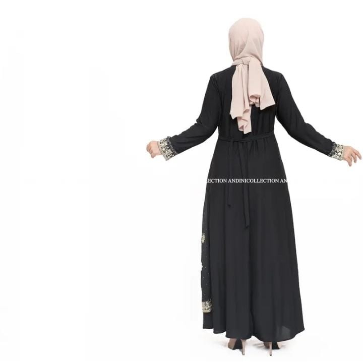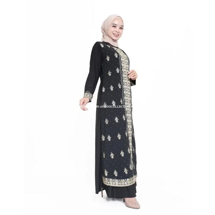 DRESS GAMIS LEBARAN 2323 Andinicollection Abaya Turkey 444 Amarta Hitam Putih Dewasa Muslim Bordir dan Payet Mewah