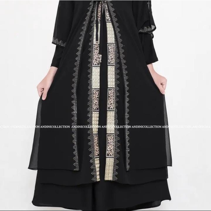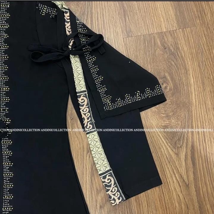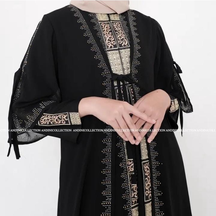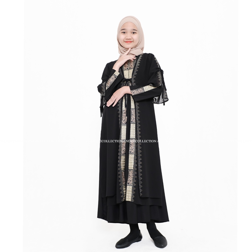 DRESS GAMIS LEBARAN 2325 [ANAK TANGGUNG] Andinicollection Abaya Turkey 127 Amarta Hitam Putih Muslim Bordir dan Payet Mewah