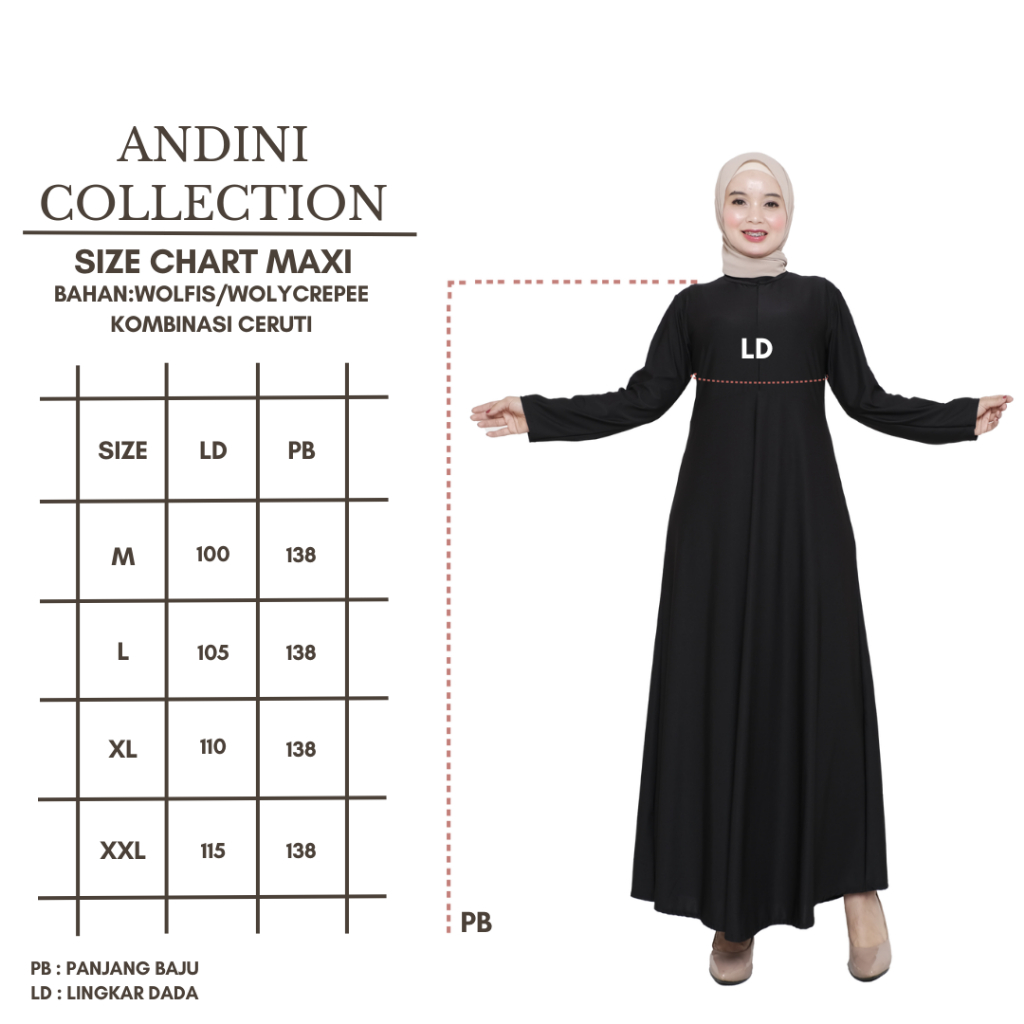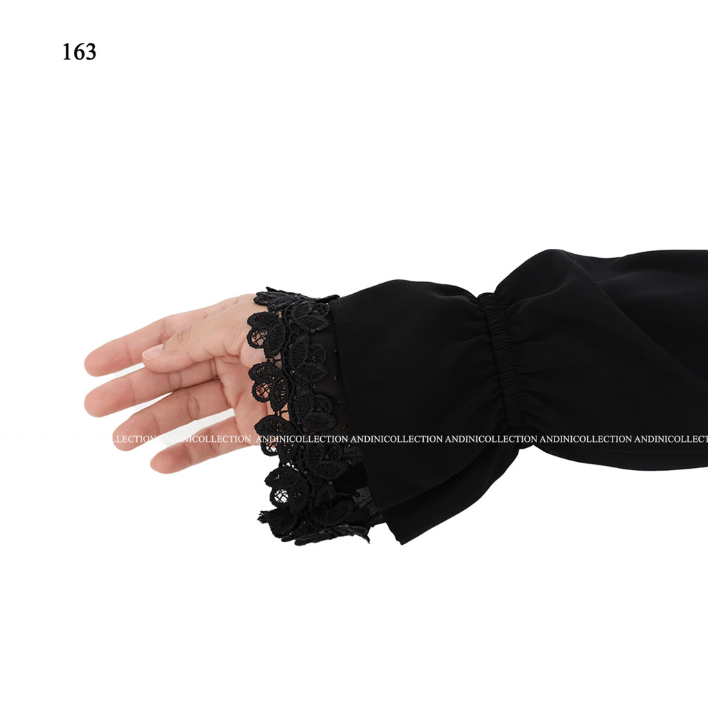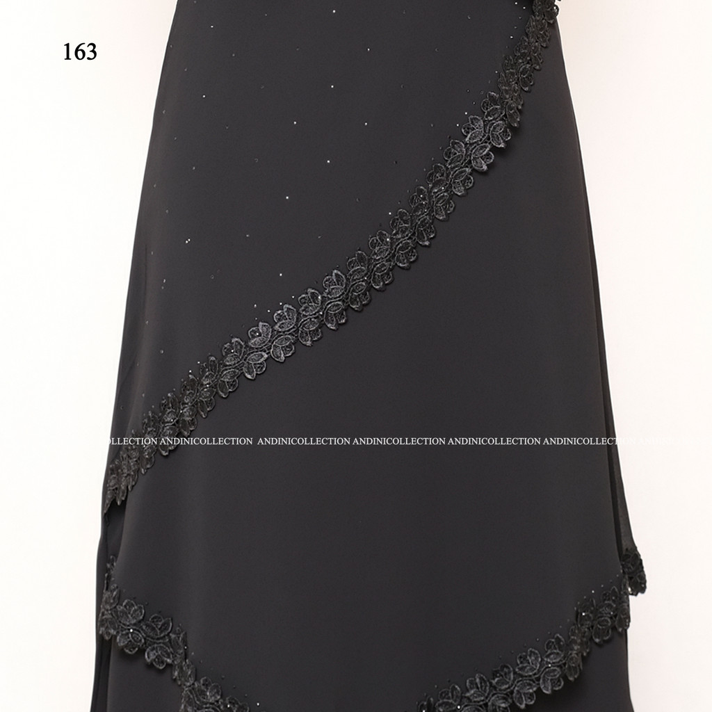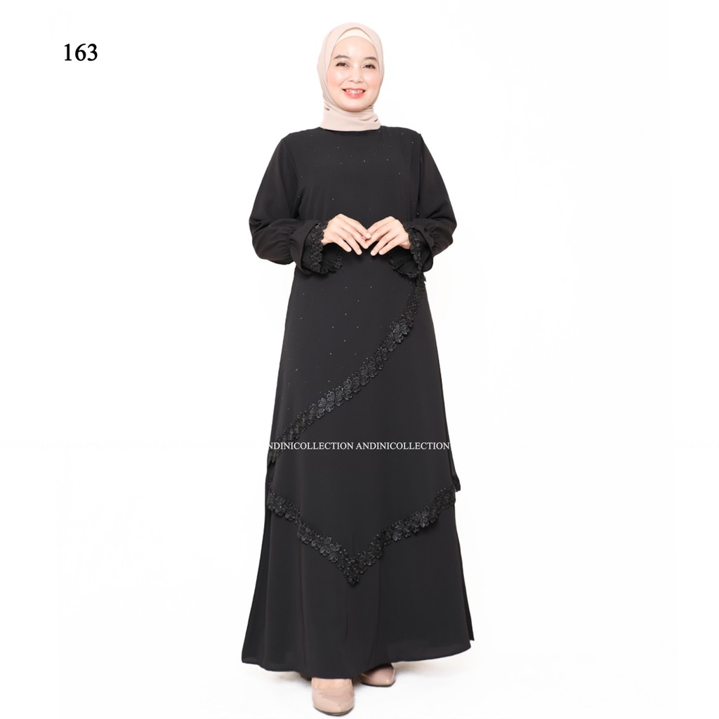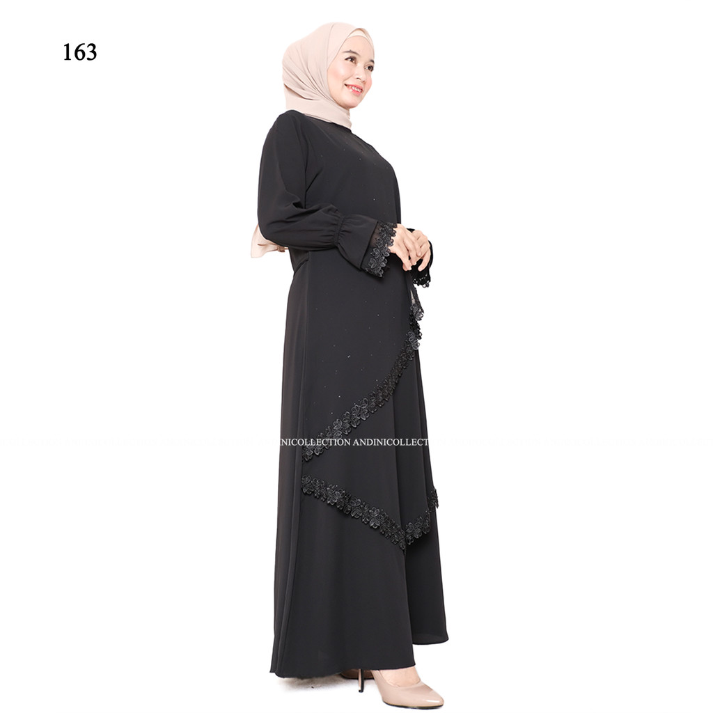DRESS GAMIS LEBARAN 2332 Andinicollection Abaya Maxi 164 Miraj Jetblack Umroh Hitam Putih Renda Bordir Dewasa Muslimah