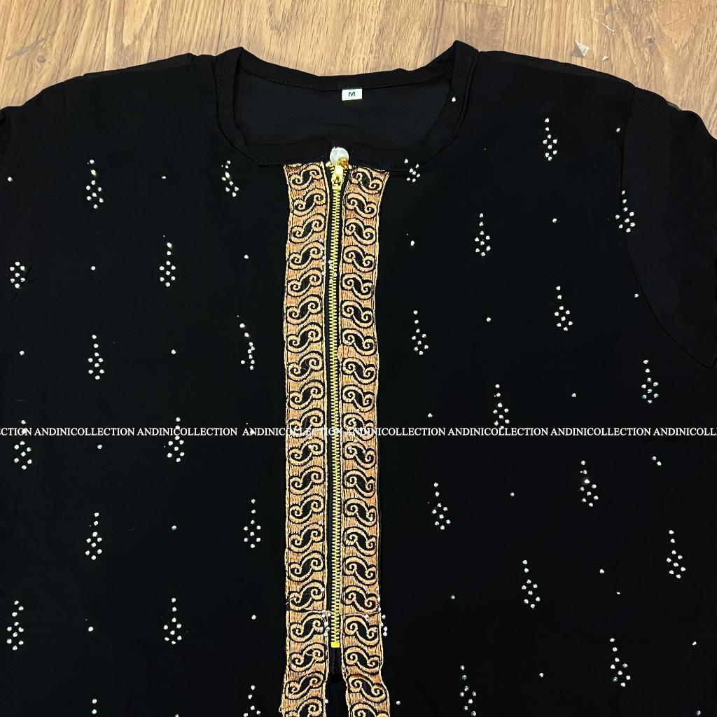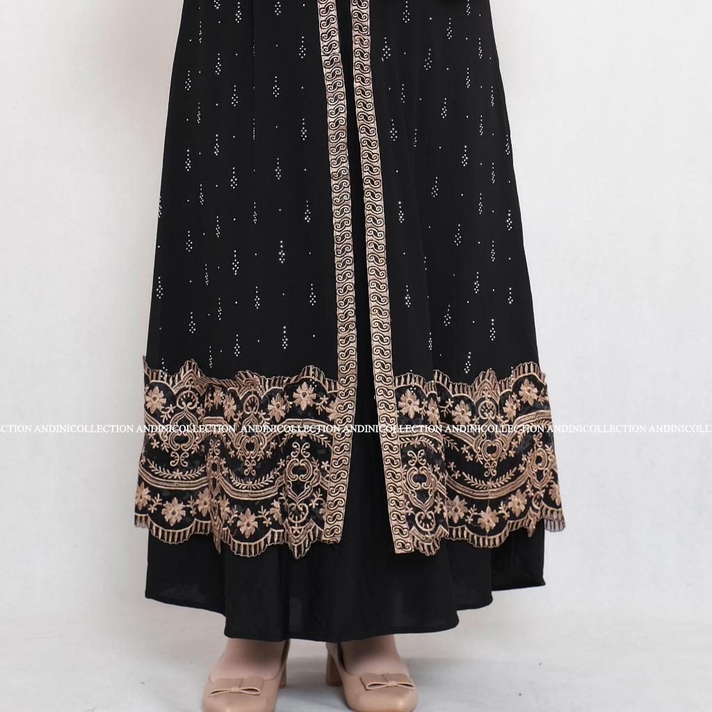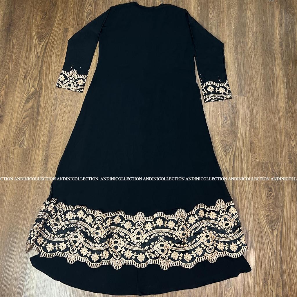 DRESS GAMIS LEBARAN 2344 Andinicollection Abaya Turkey 310 Amarta EKSTRA JUMBO LD 130-135 Hitam Dewasa Muslim Bordir dan Payet Mewah