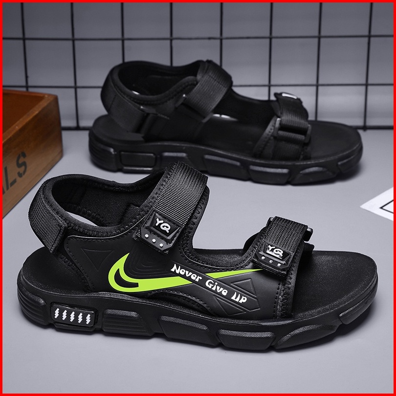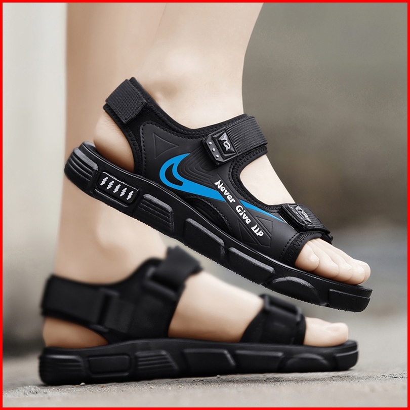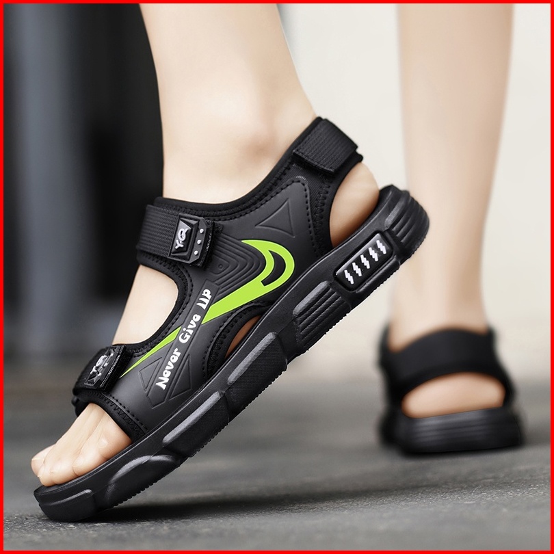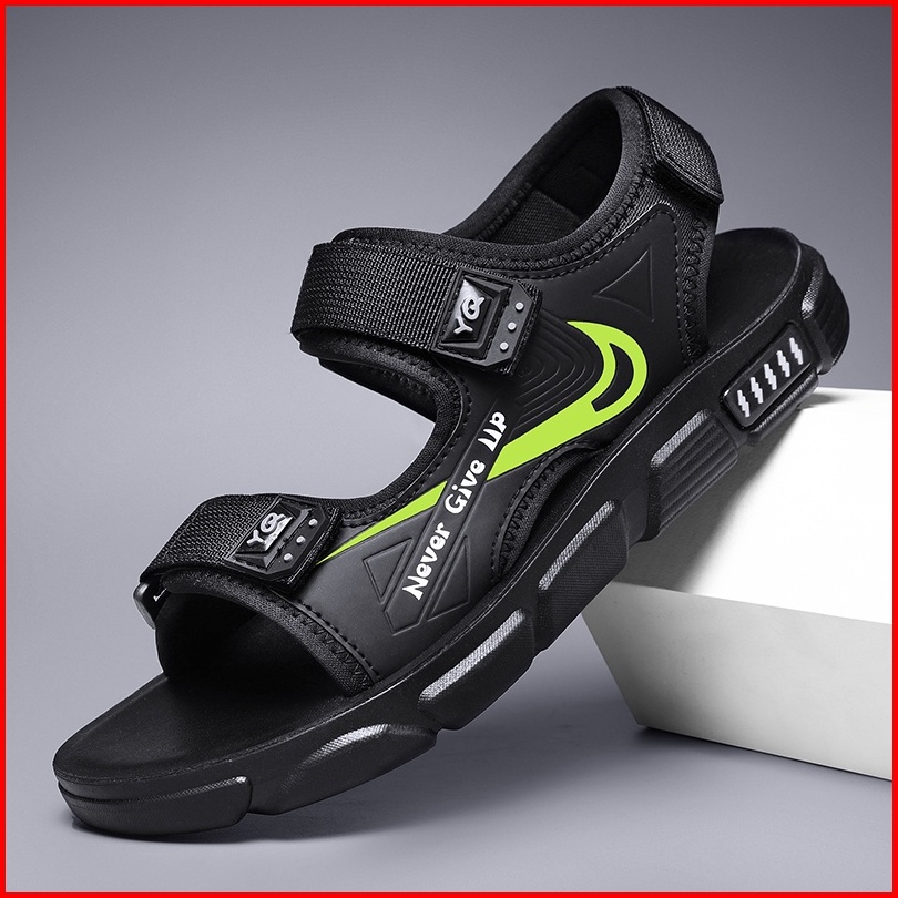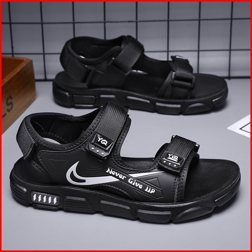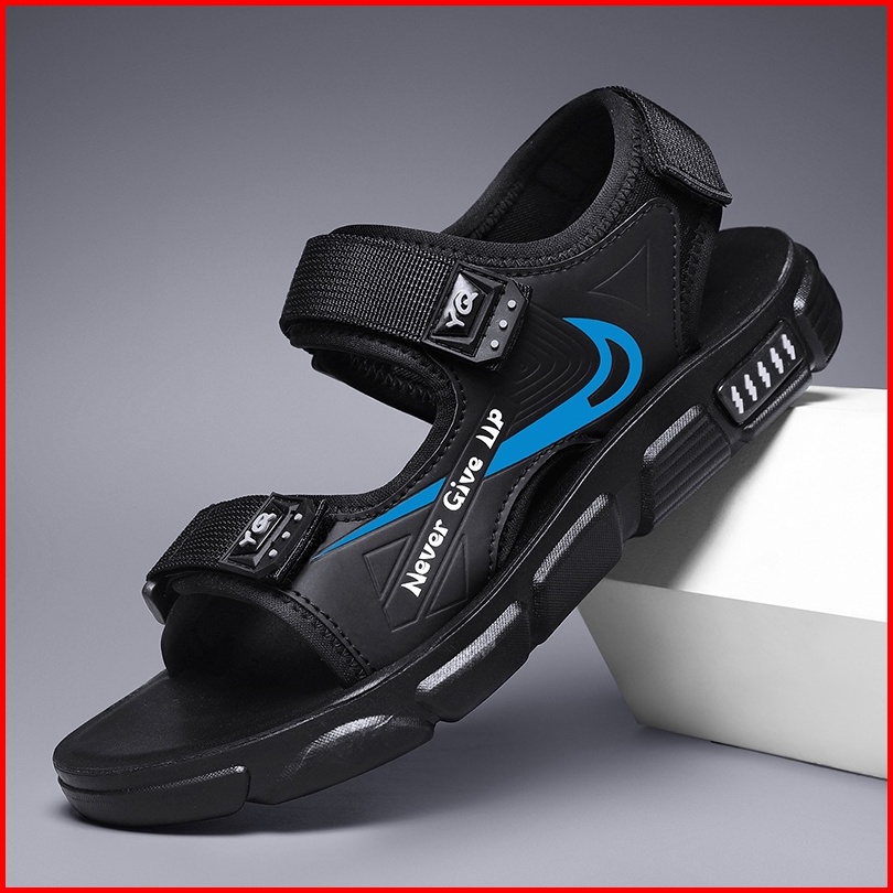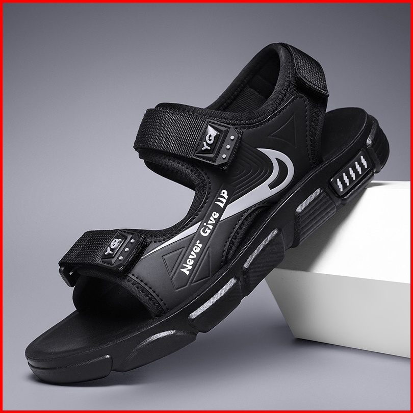 Sepatu Sandal Pria - Sandal Gunung Pria Terbaru Hitam Casual Bahan Kulit Anti Slip Tahan Lama