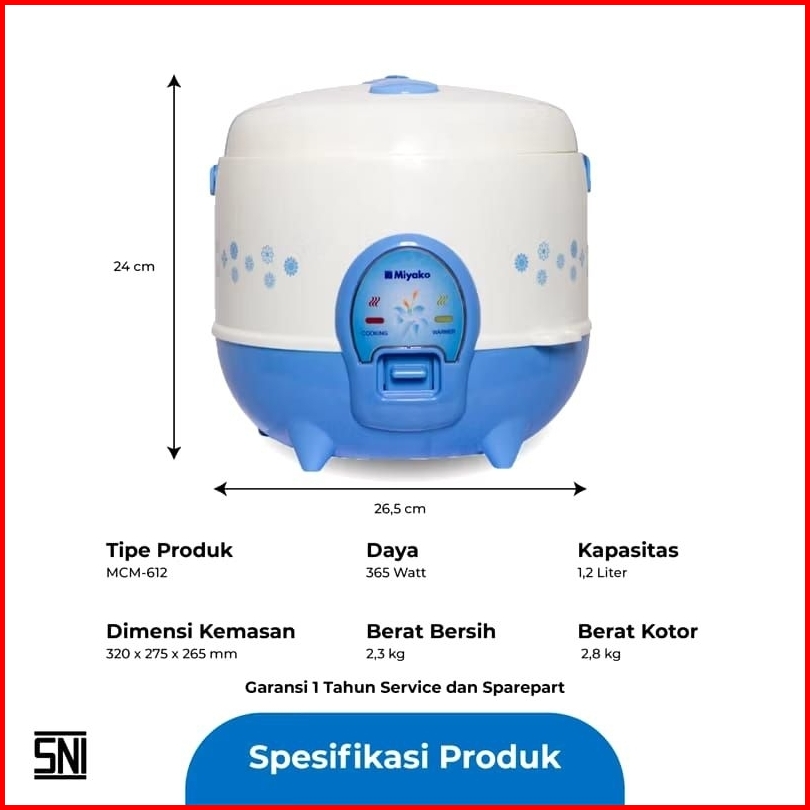 Rice Cooker Miyako Mcm 512c Magic Com Miyako Mcm 612 1.2 Liter