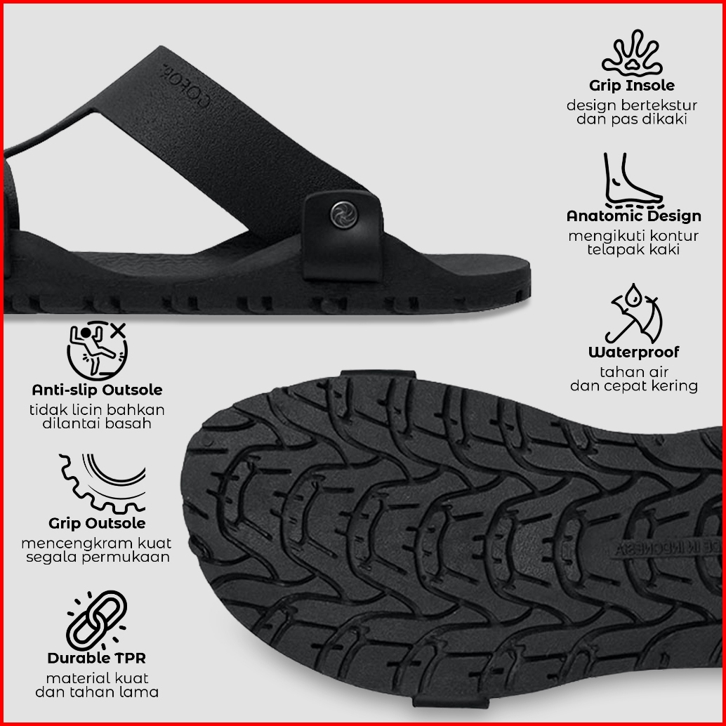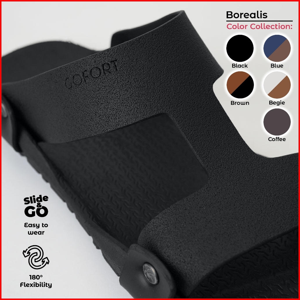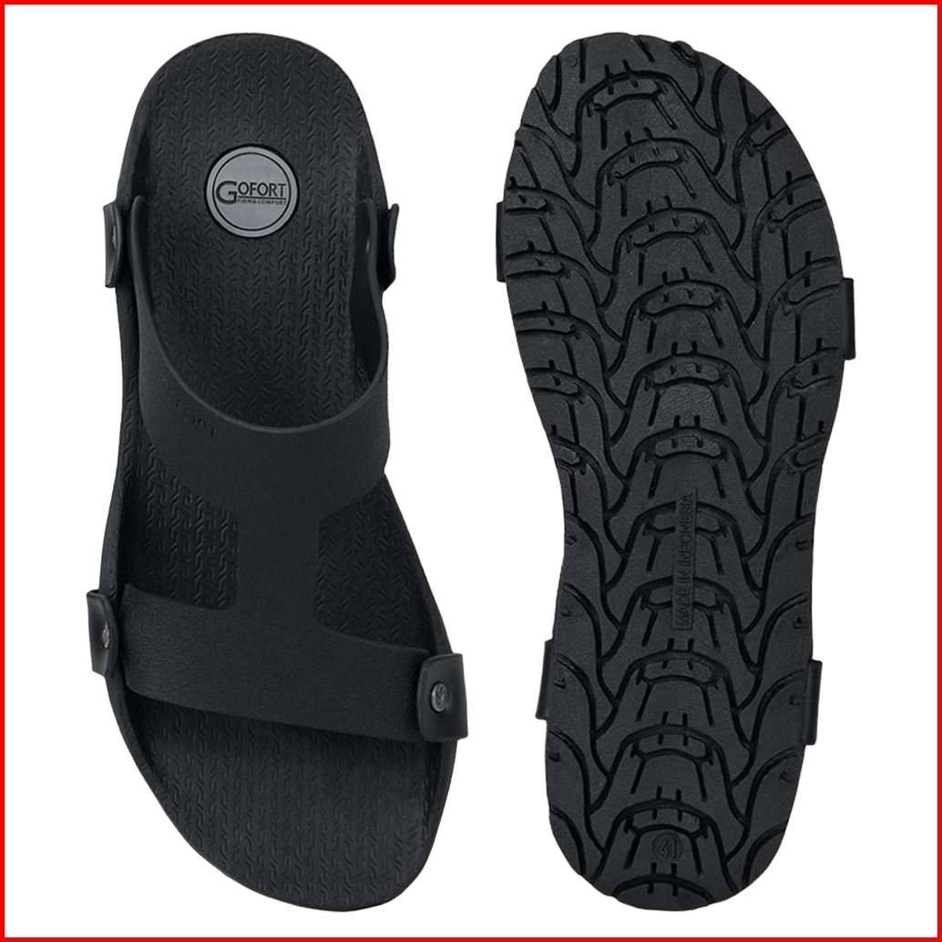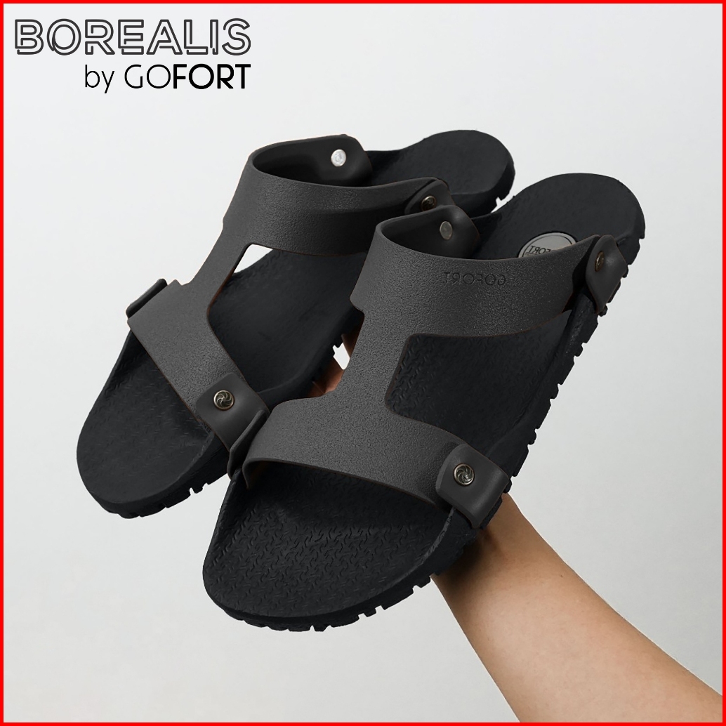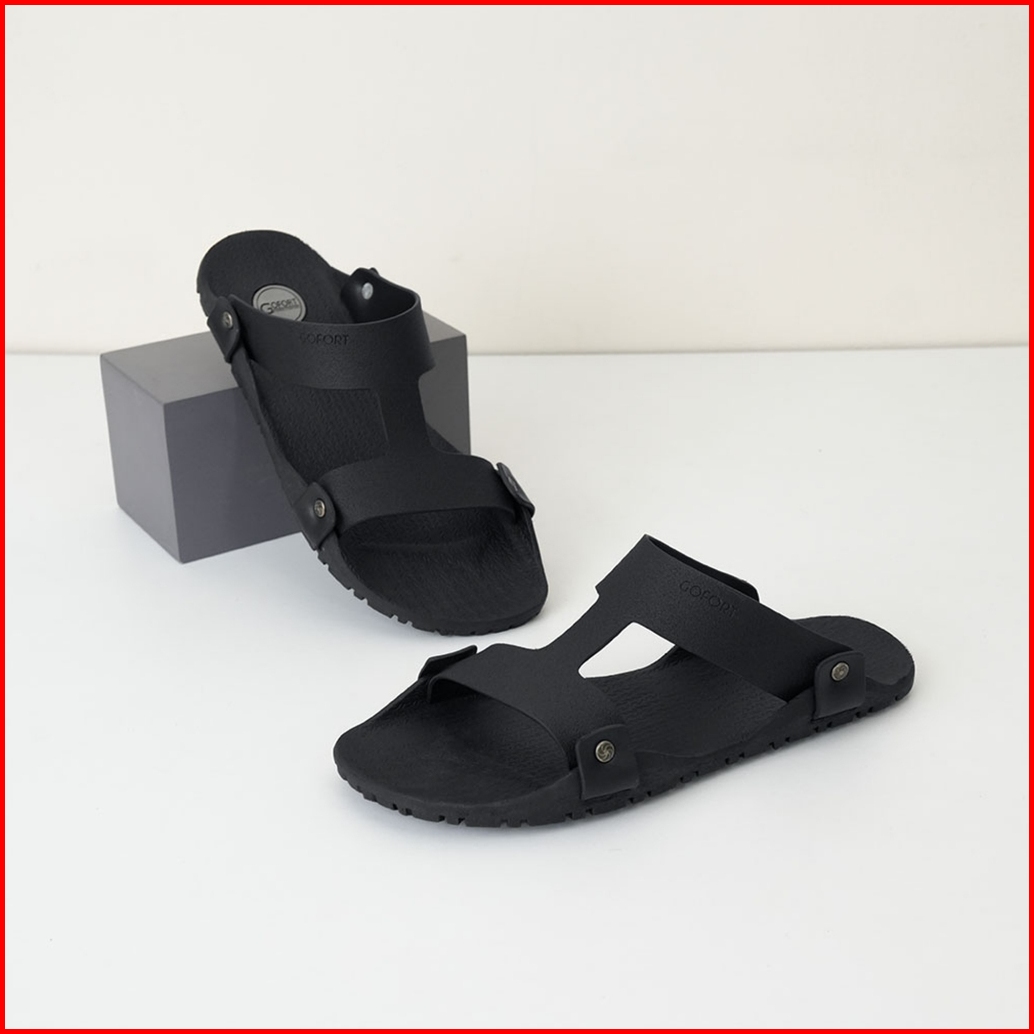 Sandal Slop Pria Original Gofort Borealis Black Sendal Slip On Karet Hitam Distro Ori Anti Licin