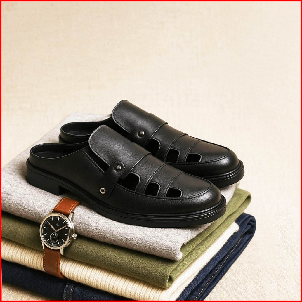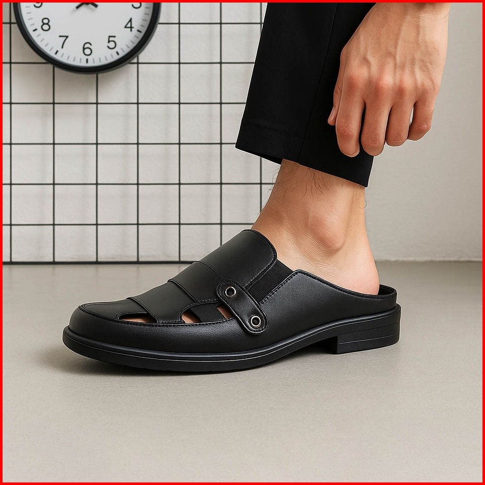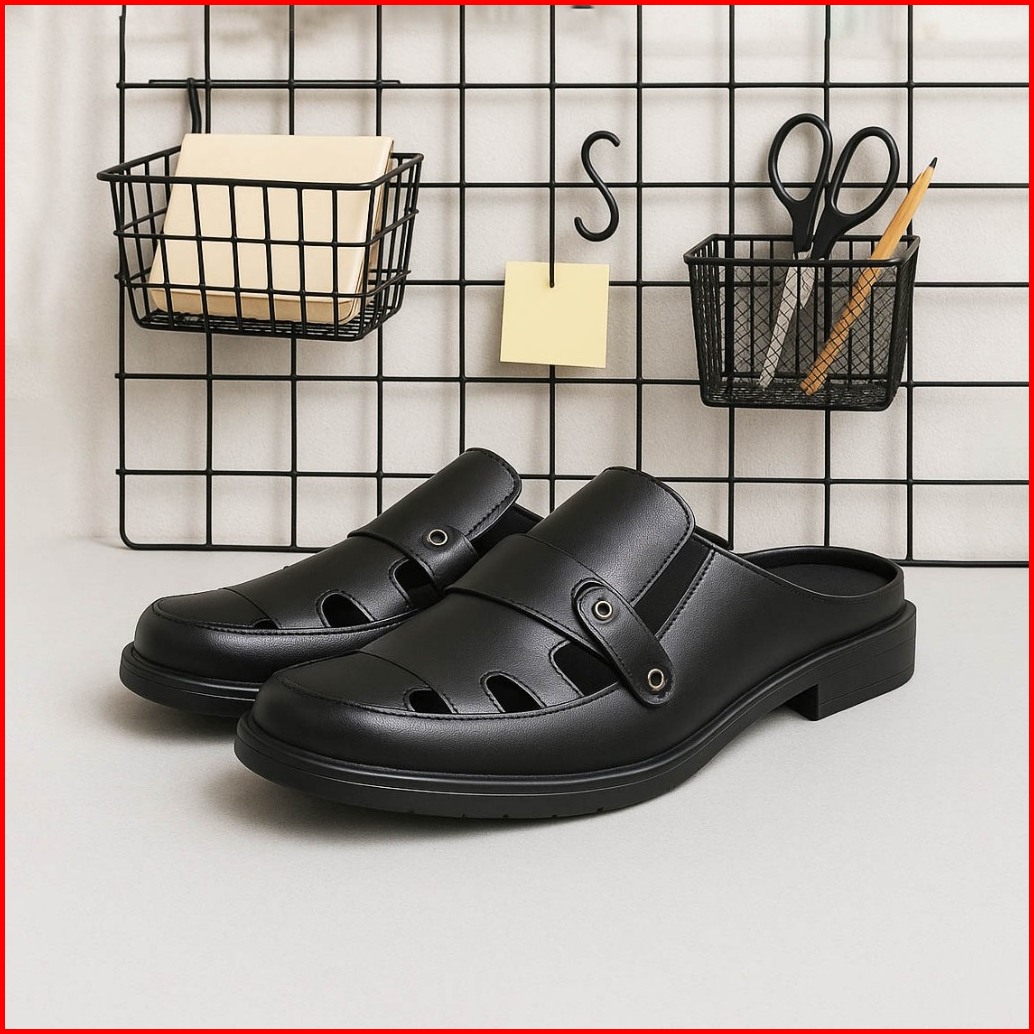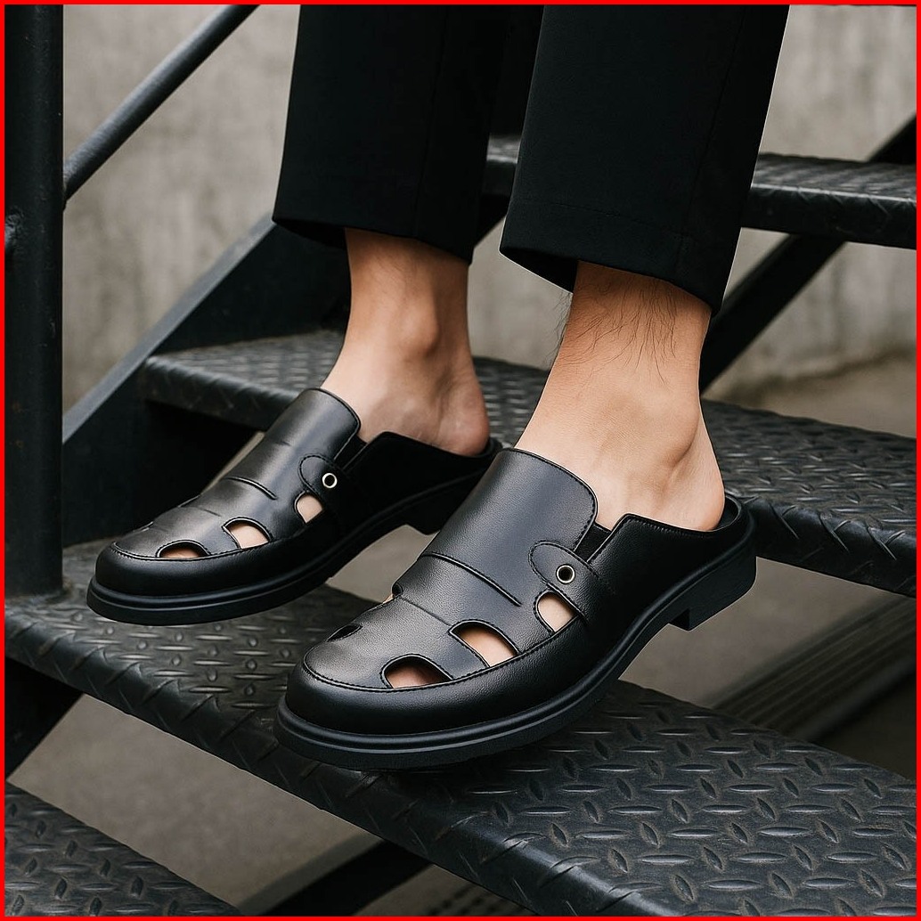 Malkazio - Caroll Black Big Size 39-43 44 45 46 47 Sepatu Sandal Bustong Kulit Asli Ukuran Jumbo Besar Kecil