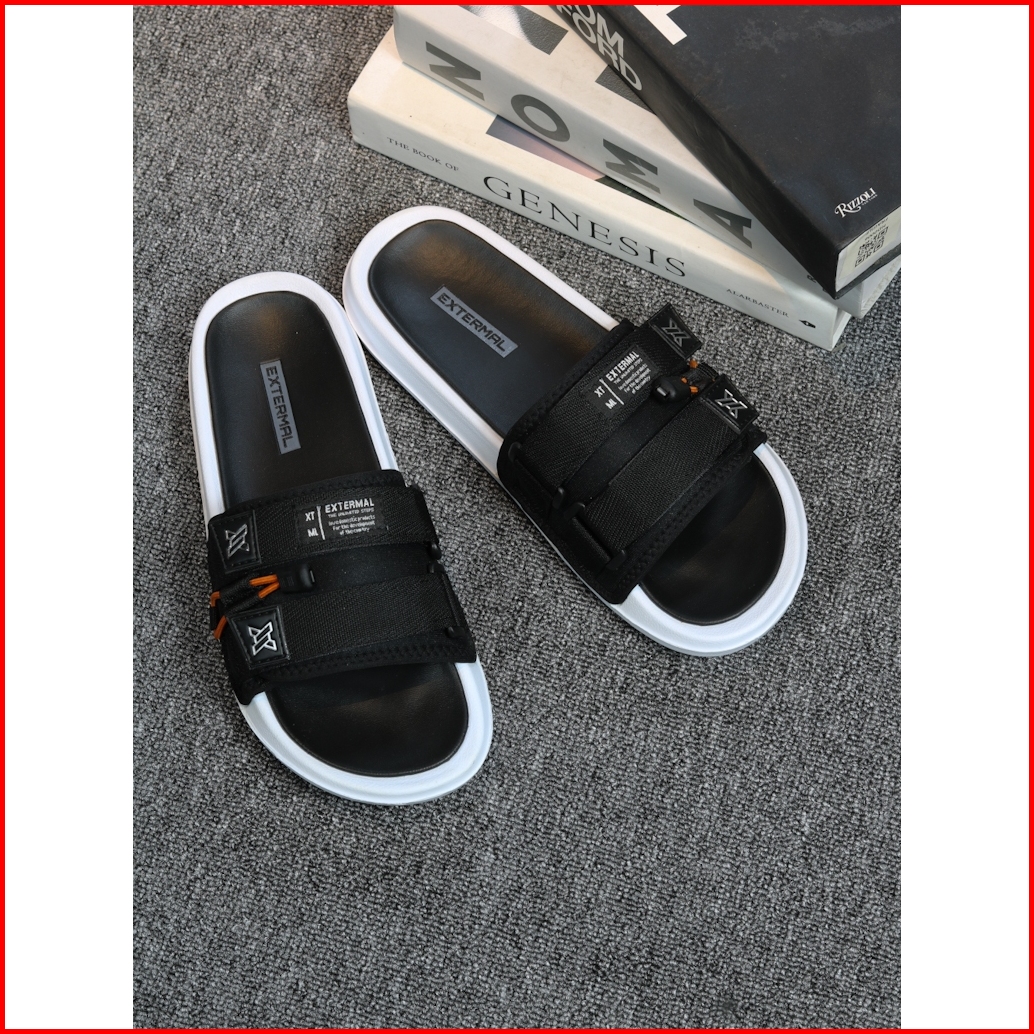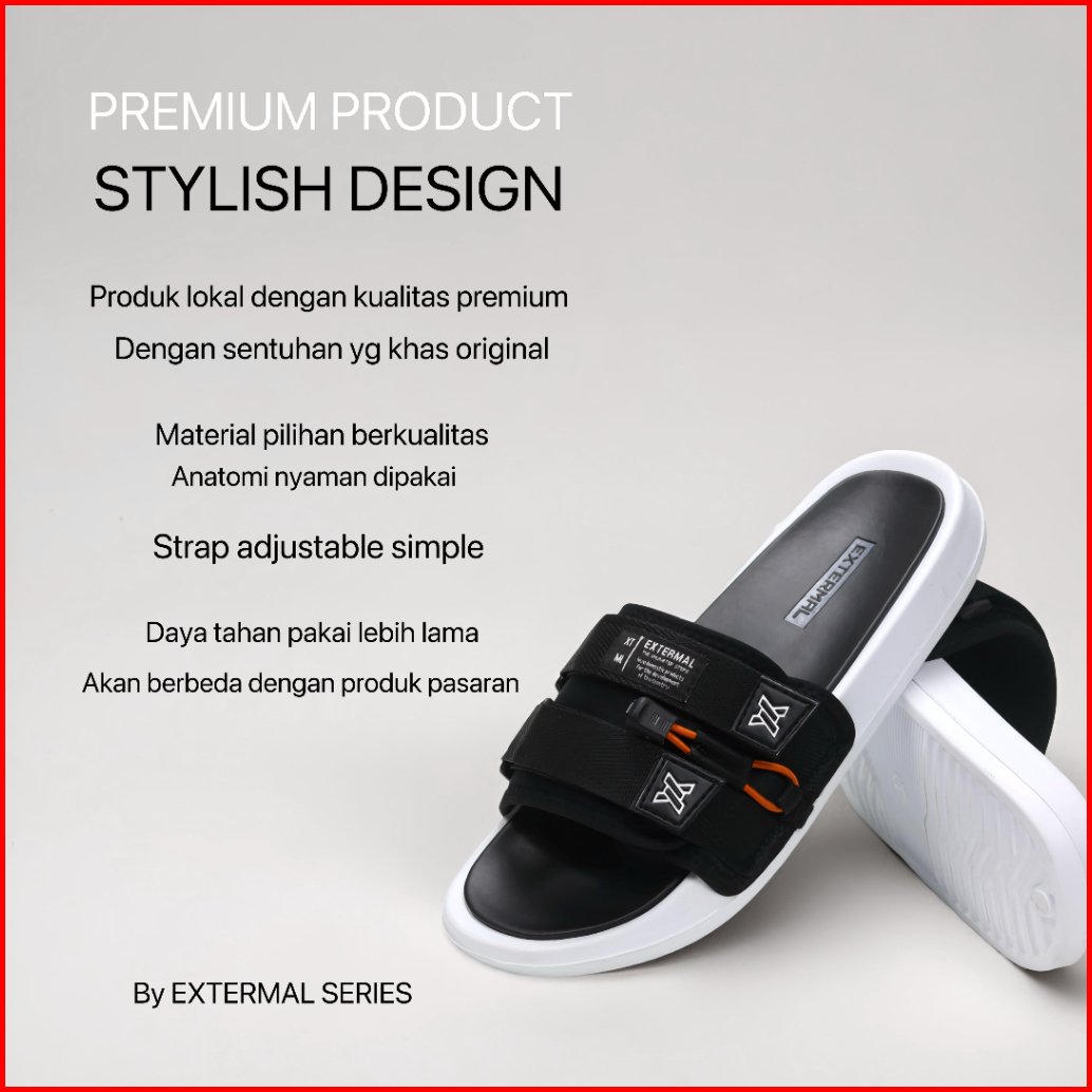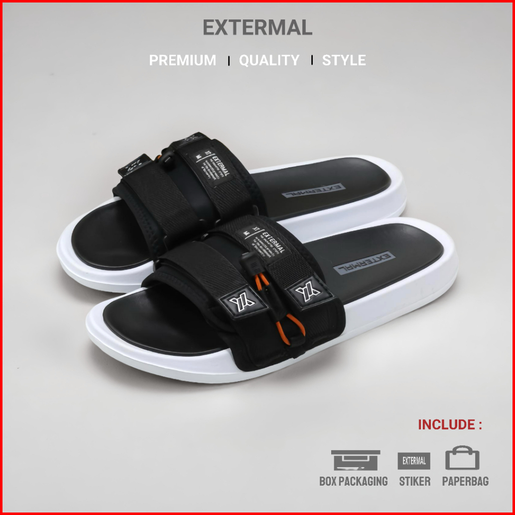 Extermal Sandal Slide Pria Sendal Selop Cowok Slip On Terbaru Kekinian Ex 371 Black Ukuran 39 40 41 42 43