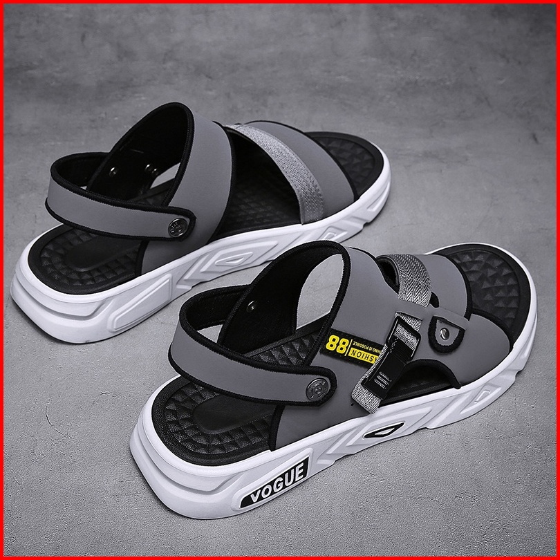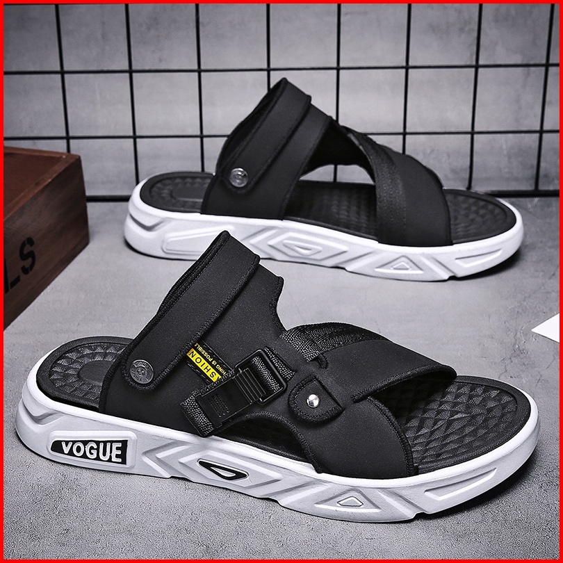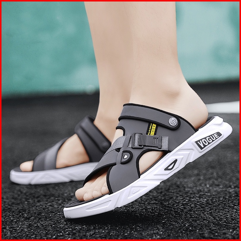 Sandal Pria Slide Hitam Abu Sendal Pria Kasual Sendal Cowok Bahan Kulit Karet Pvc Size 39-44
