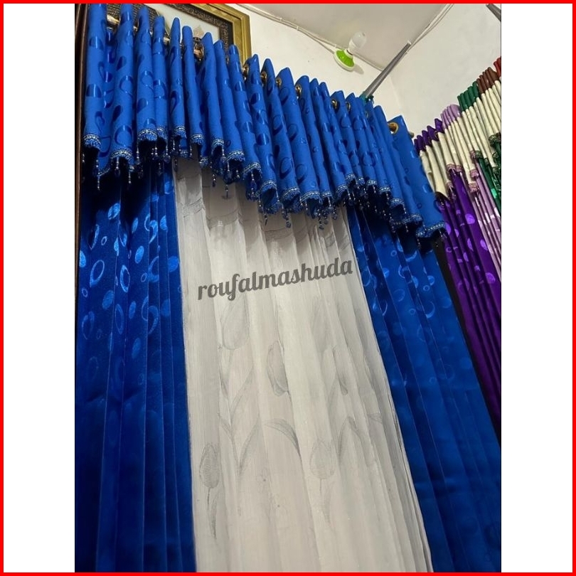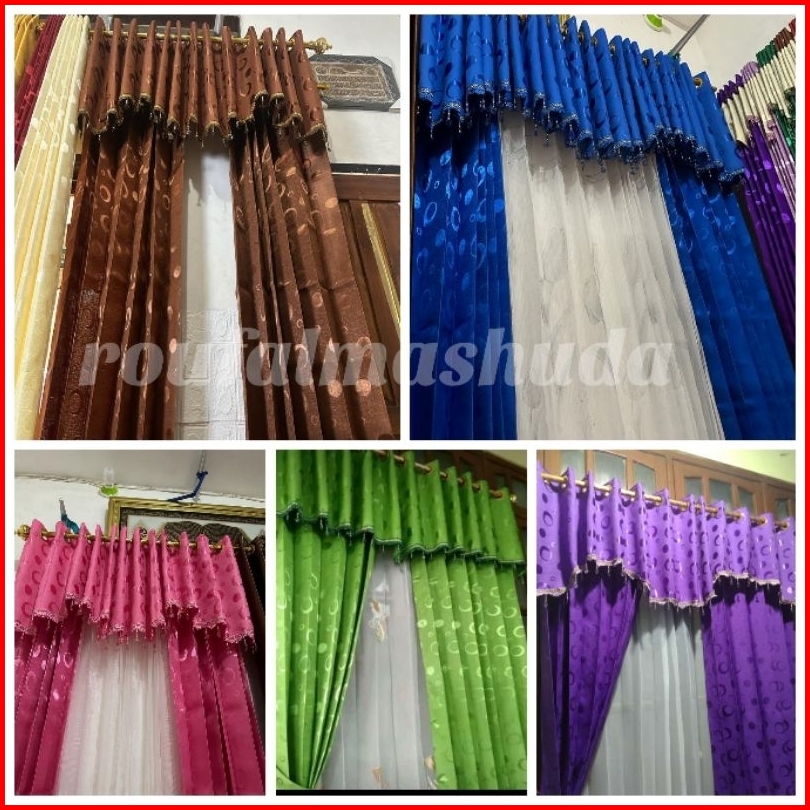 Lebar 1mtr 1.5mtr 2mtr Satu Set Gorden Poni Polkadot Poni Pisah