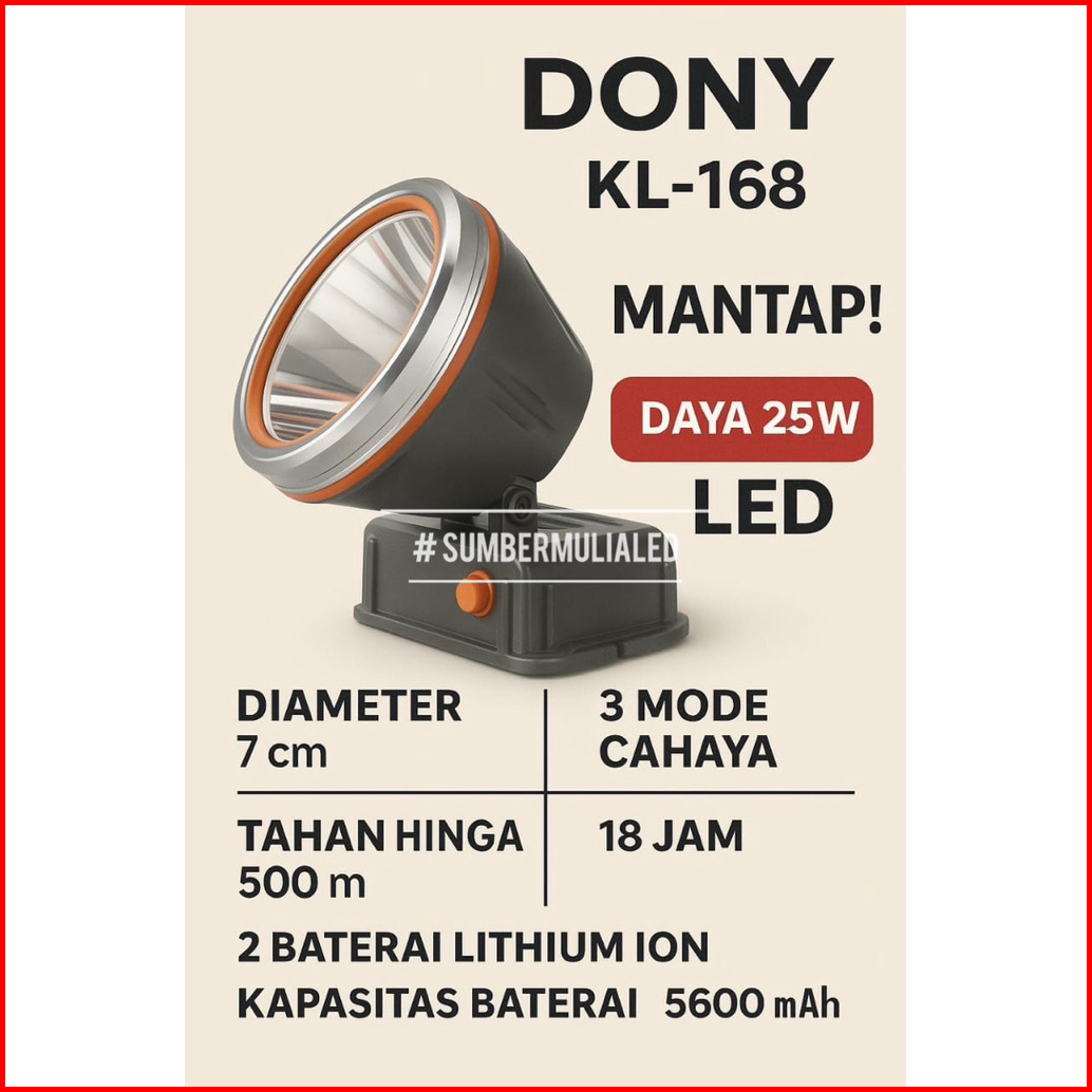 Senter Kepala Dony Kl-168 Mantap Led 10w Upgrade Jadi 25w Terang Awet Original