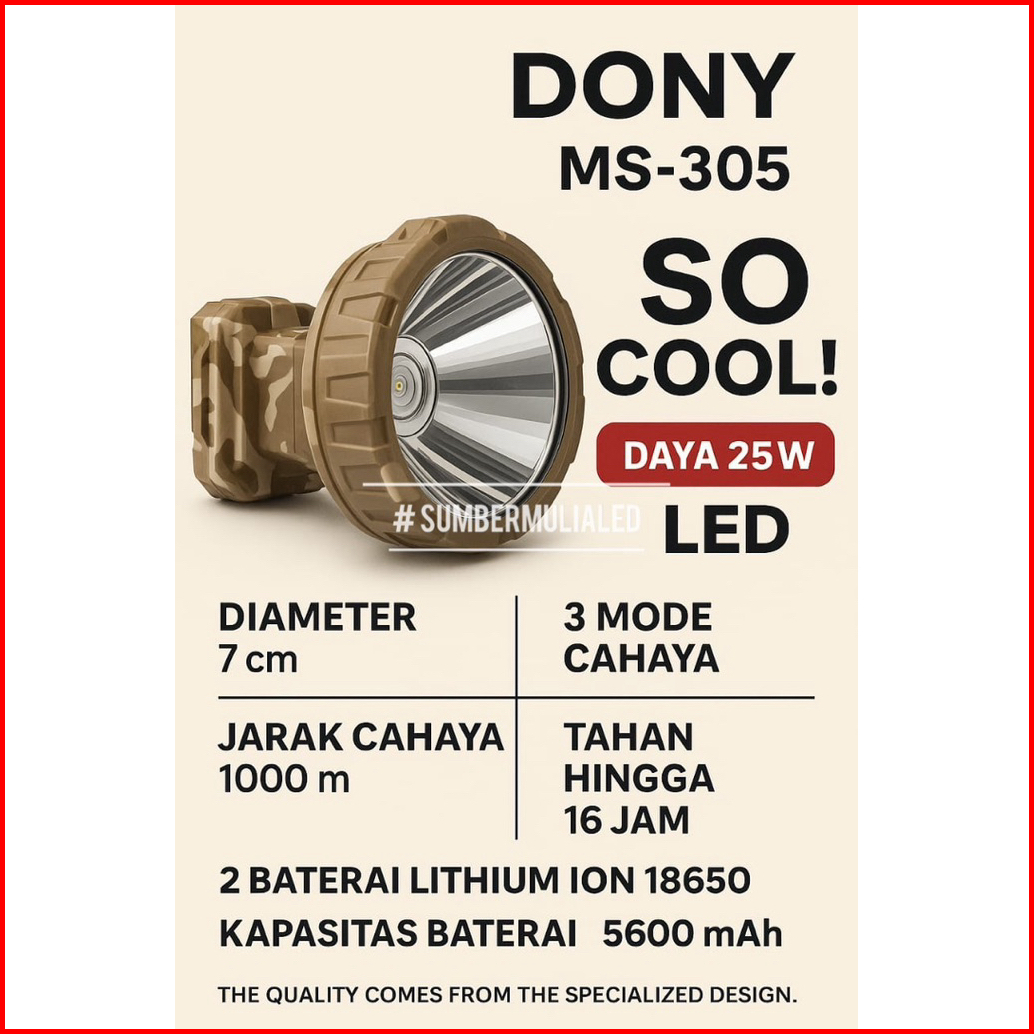 Dony Senter Kepala Cas Ms-305 So Cool 15w Upgrade Jadi 25w Loreng Tripod Charge Rechargeable 100 Original