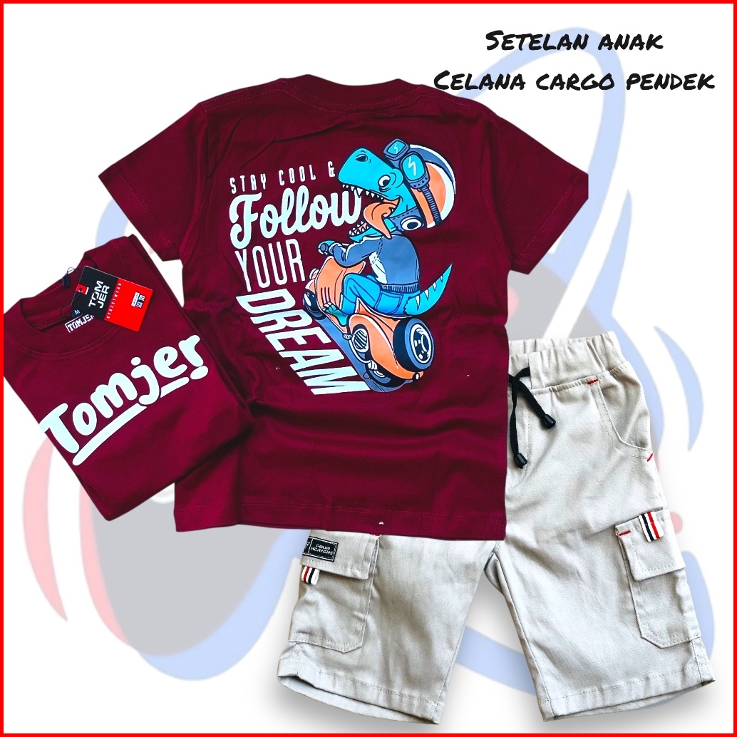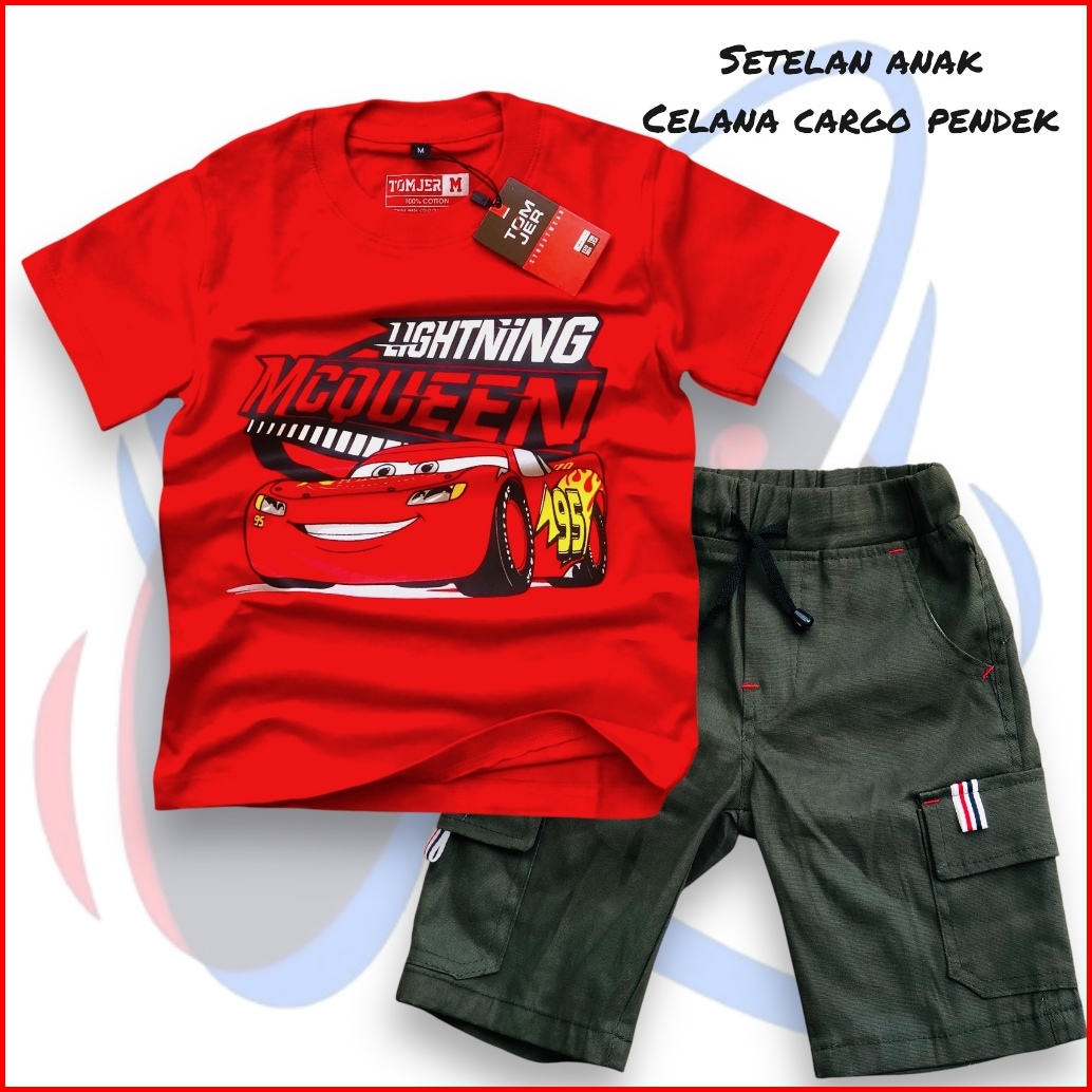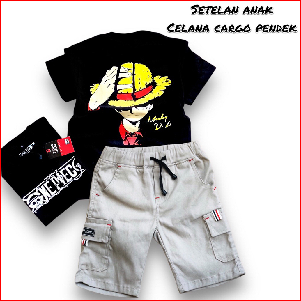 Baju Anak One Piece Dan Celana Pendek Outfit Anak Laki Laki Kaos Anak Anime Usia 4-12 Thn Setelan Anak Termurah
