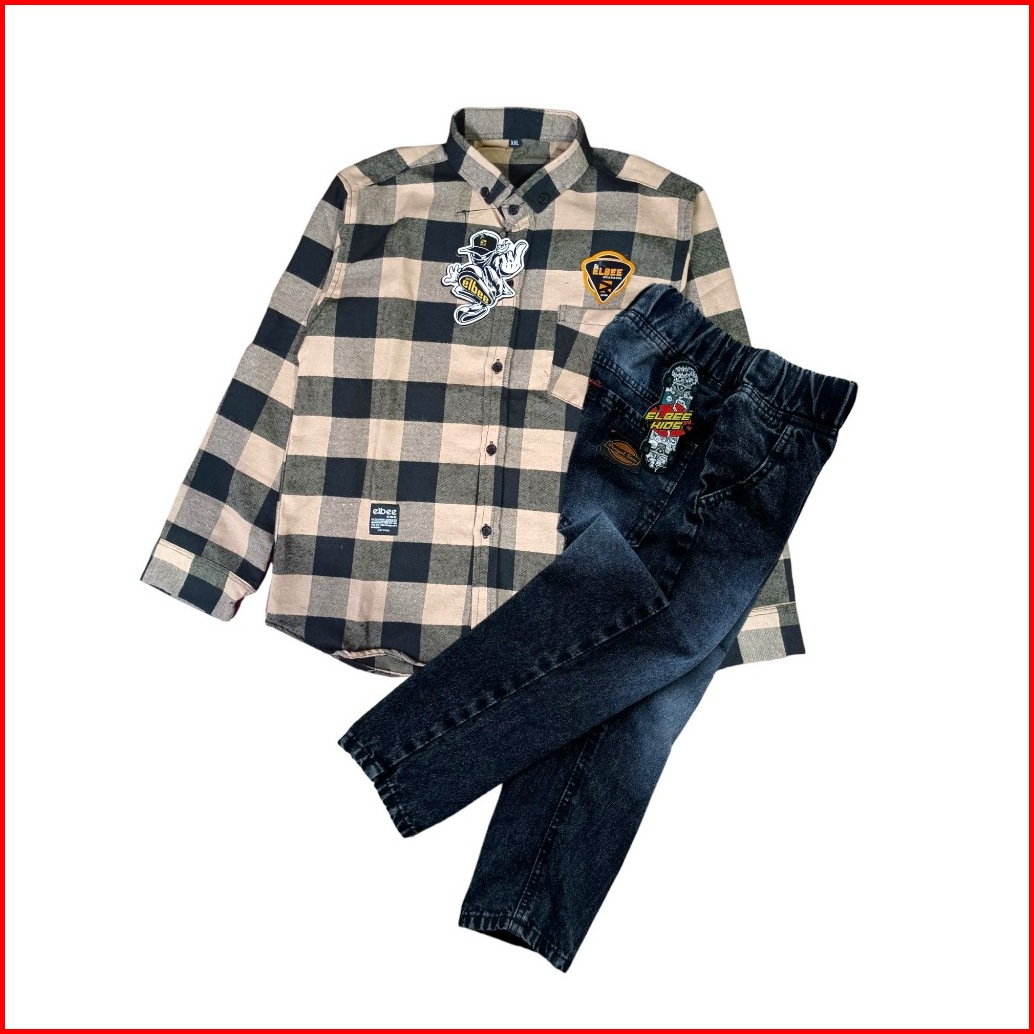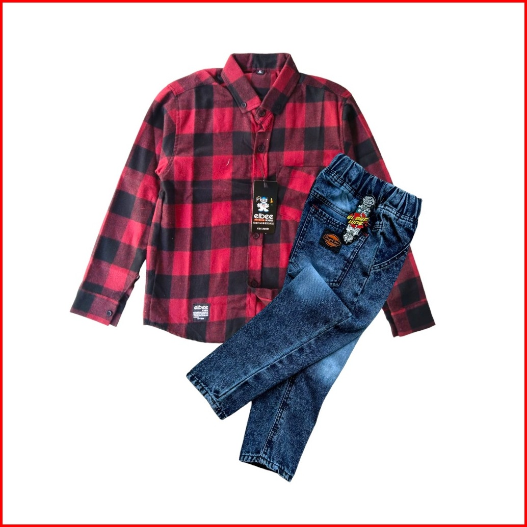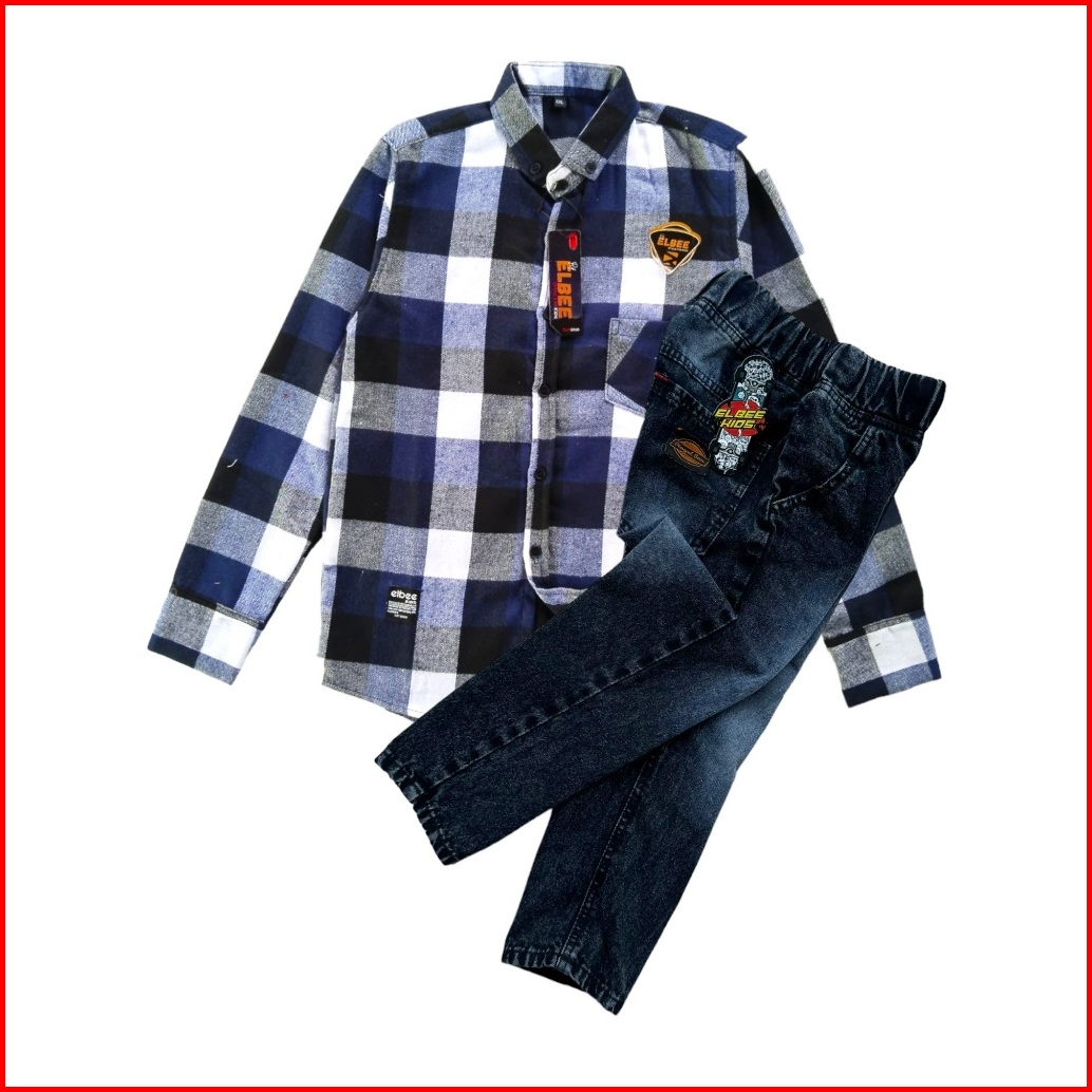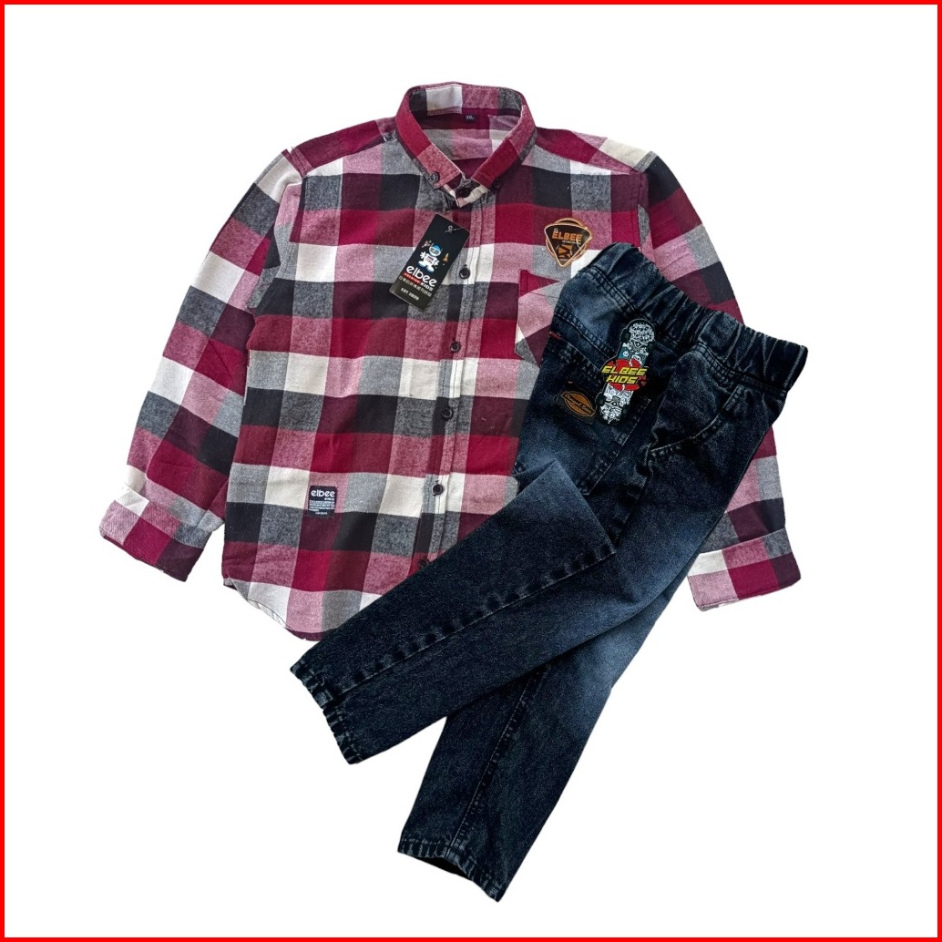 Elbee Kids Setelan Anak Anak Premium Setelan Anak Anak Murah Setelan Kemeja Flanel Celana Jeans
