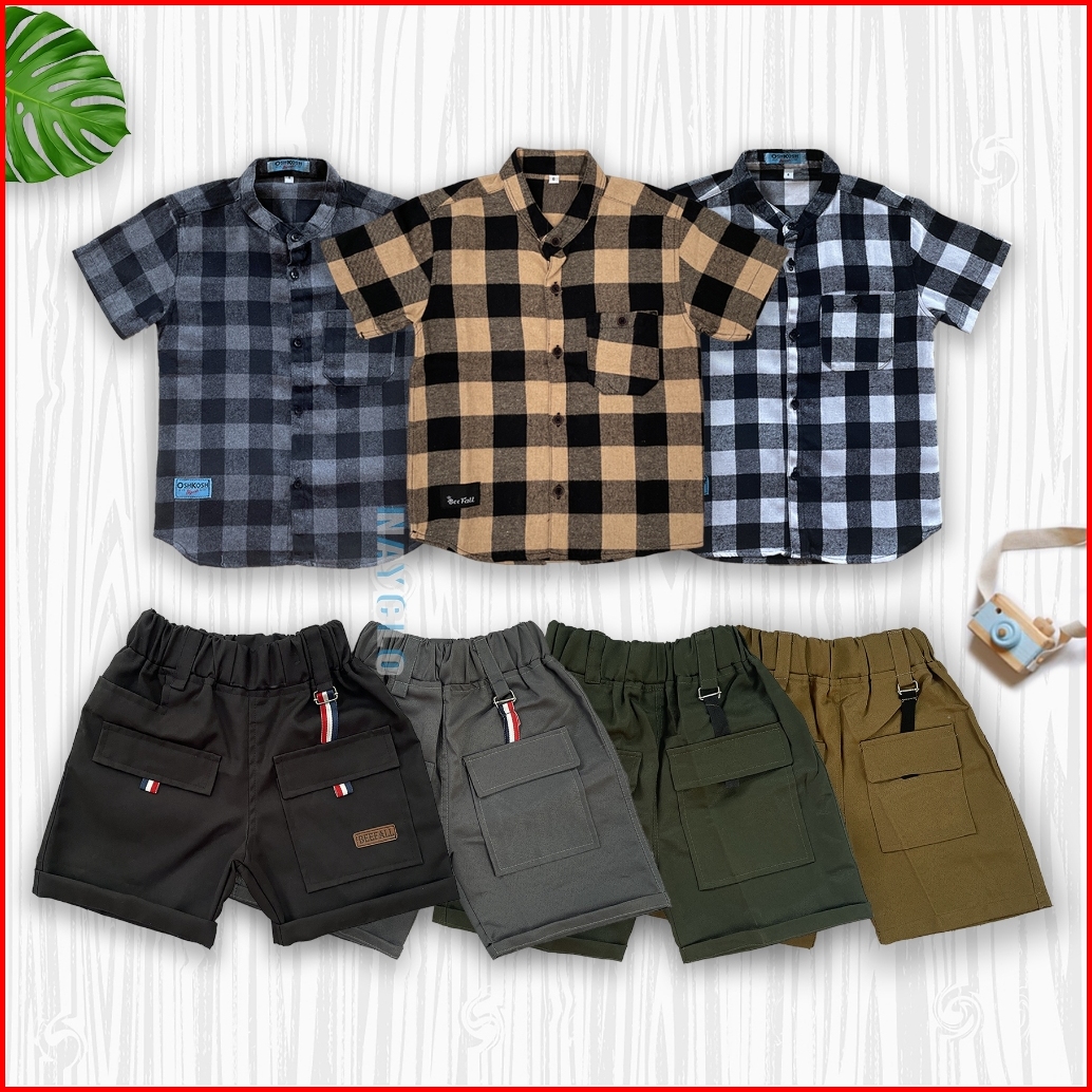 Paket 1 Kemeja Celana Anak Kemeja Anak Dan Celana Pendek Anak Baju Dan Celana Cargo Anak