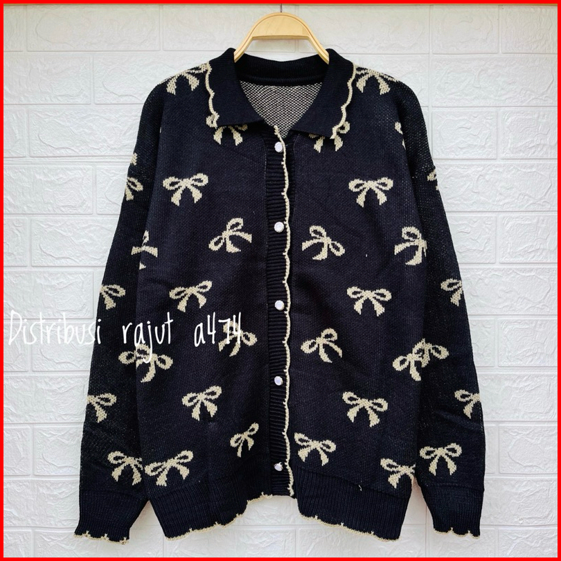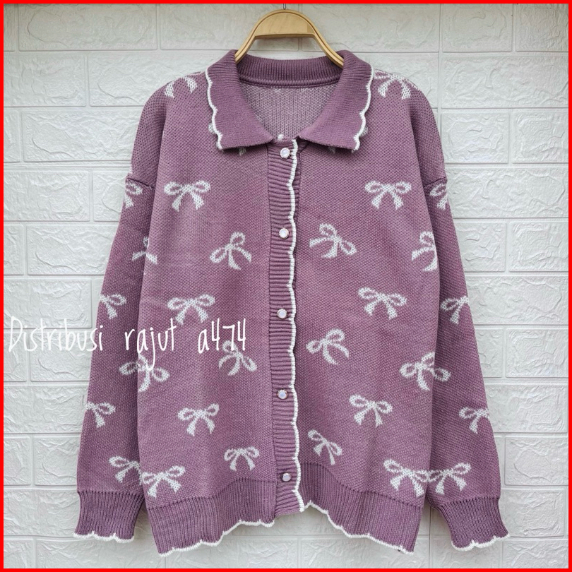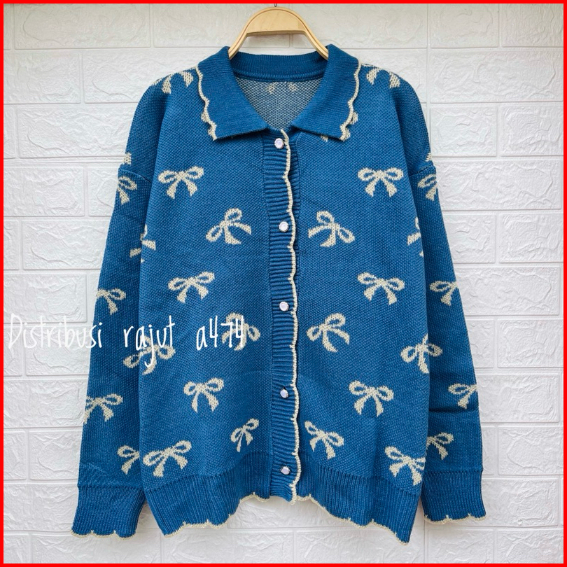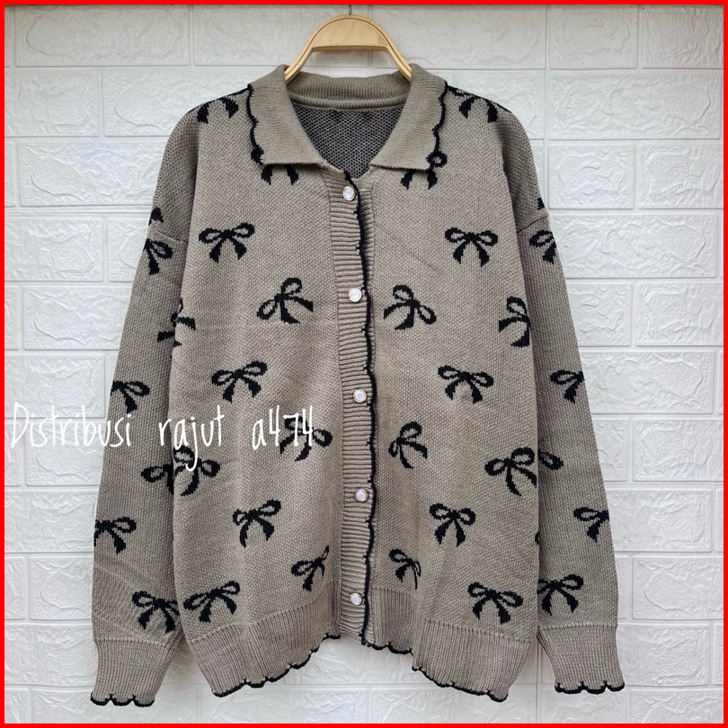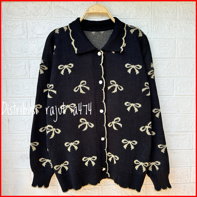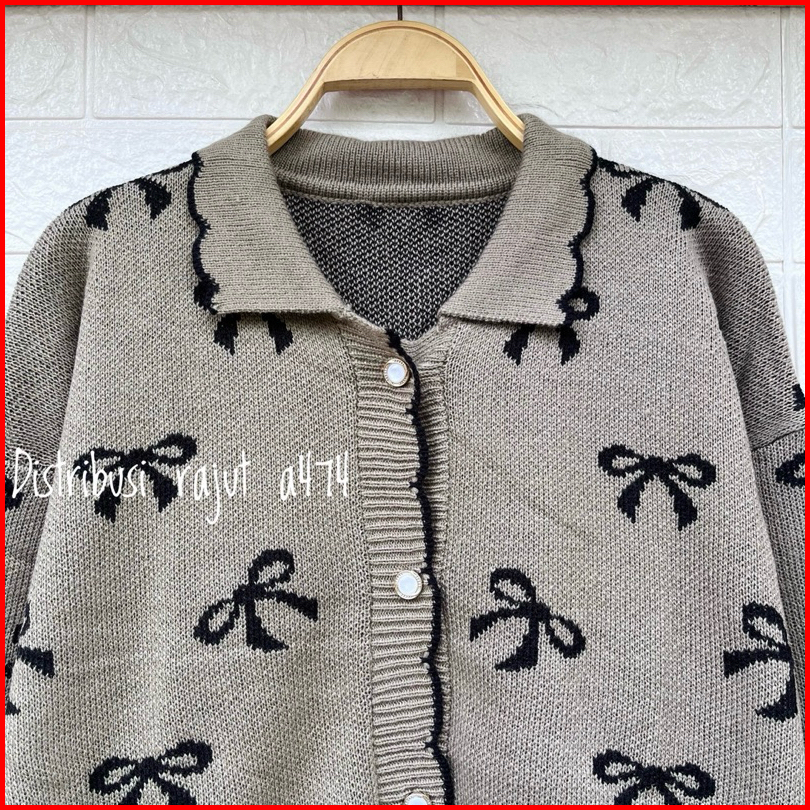 Pury Knistwear Polo Cardigan Rajut Kancing Motif Pita Premium Korean Style
