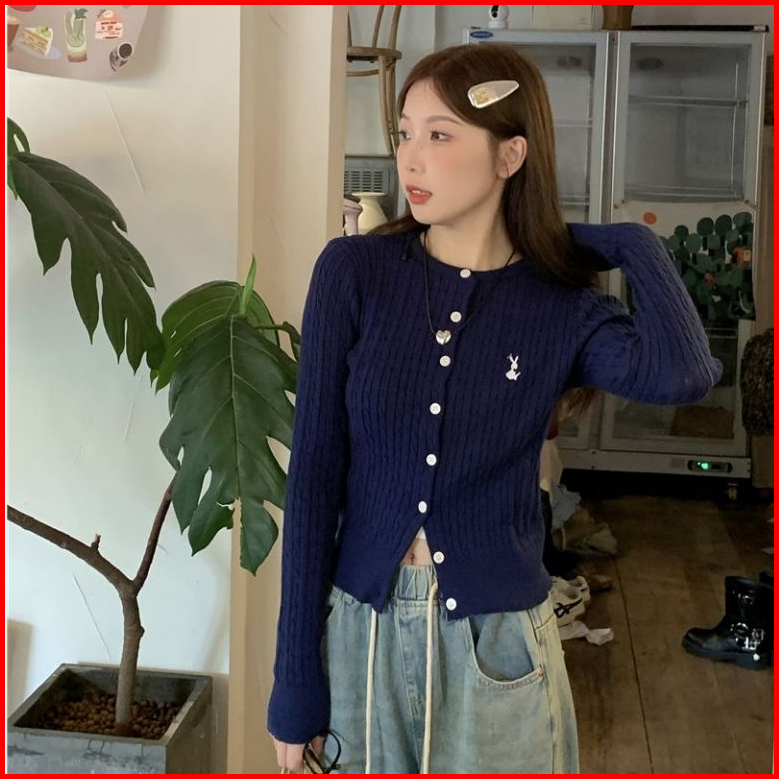 Cardigan Rajut Wanita Causal Style Knit Cardigan Round Neck Polos Cardigan Sweater Wanita Lengan Panjang Ga