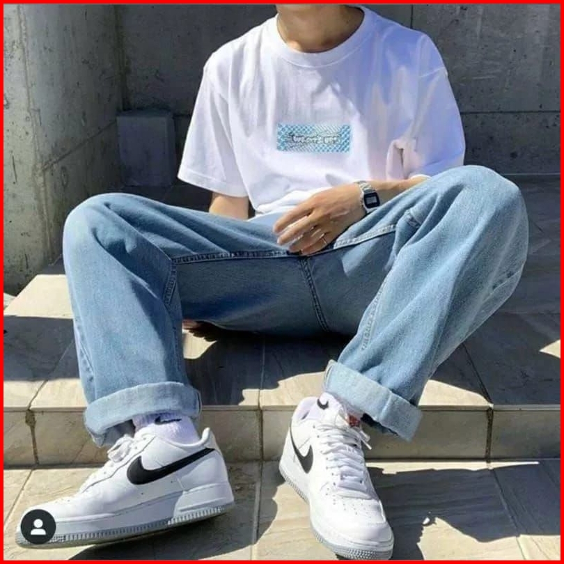 Celana Jeans Pria Baggy Pants Korean Style Oversize Loose Blue Jeans Straight Kulot Boyfriend