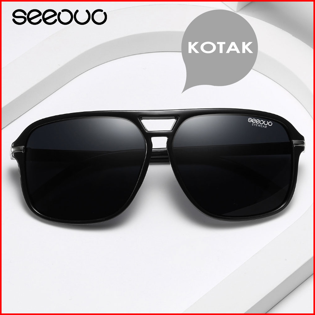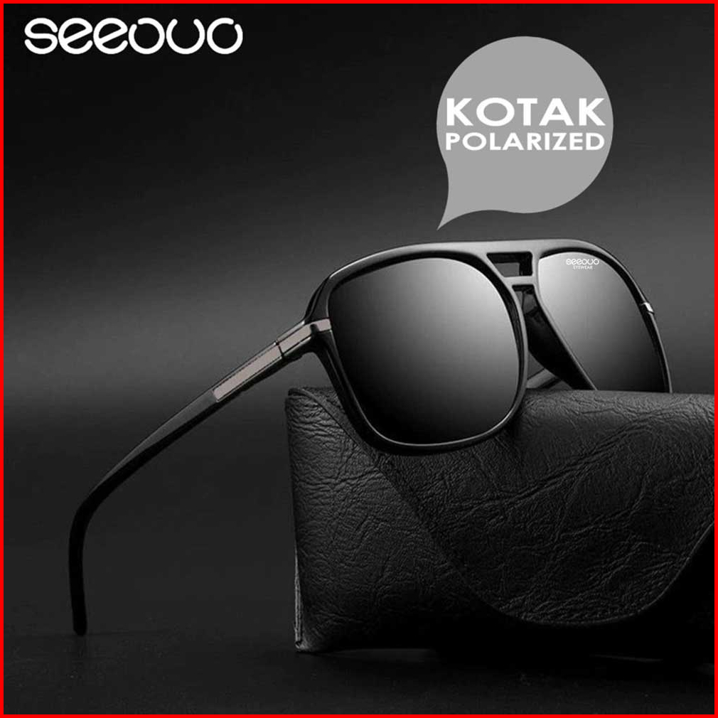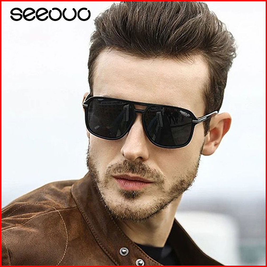 Seeouo Kacamata Hitam Sunglasses Polarized Anti Silau Uv400 Kotak Double Bridge Metal Tr90 Fashion Laki Laki 66106
