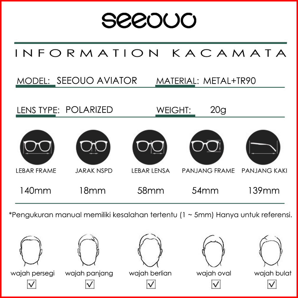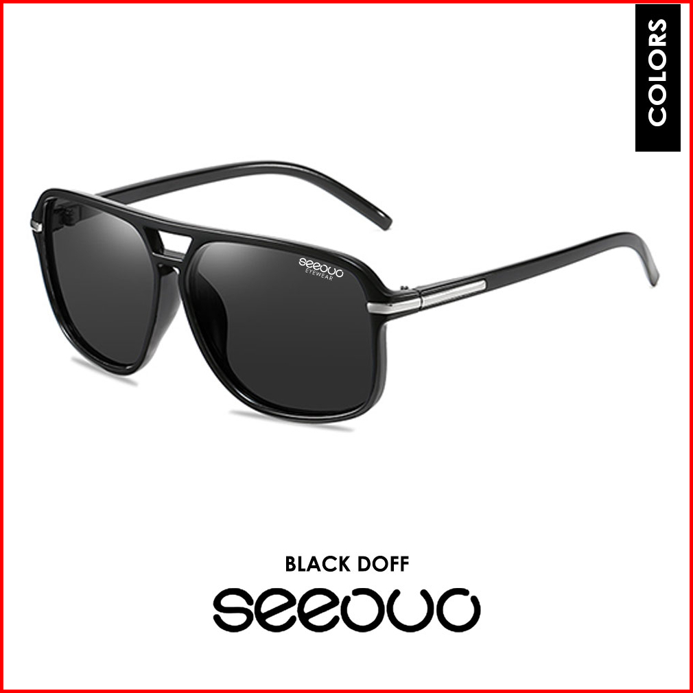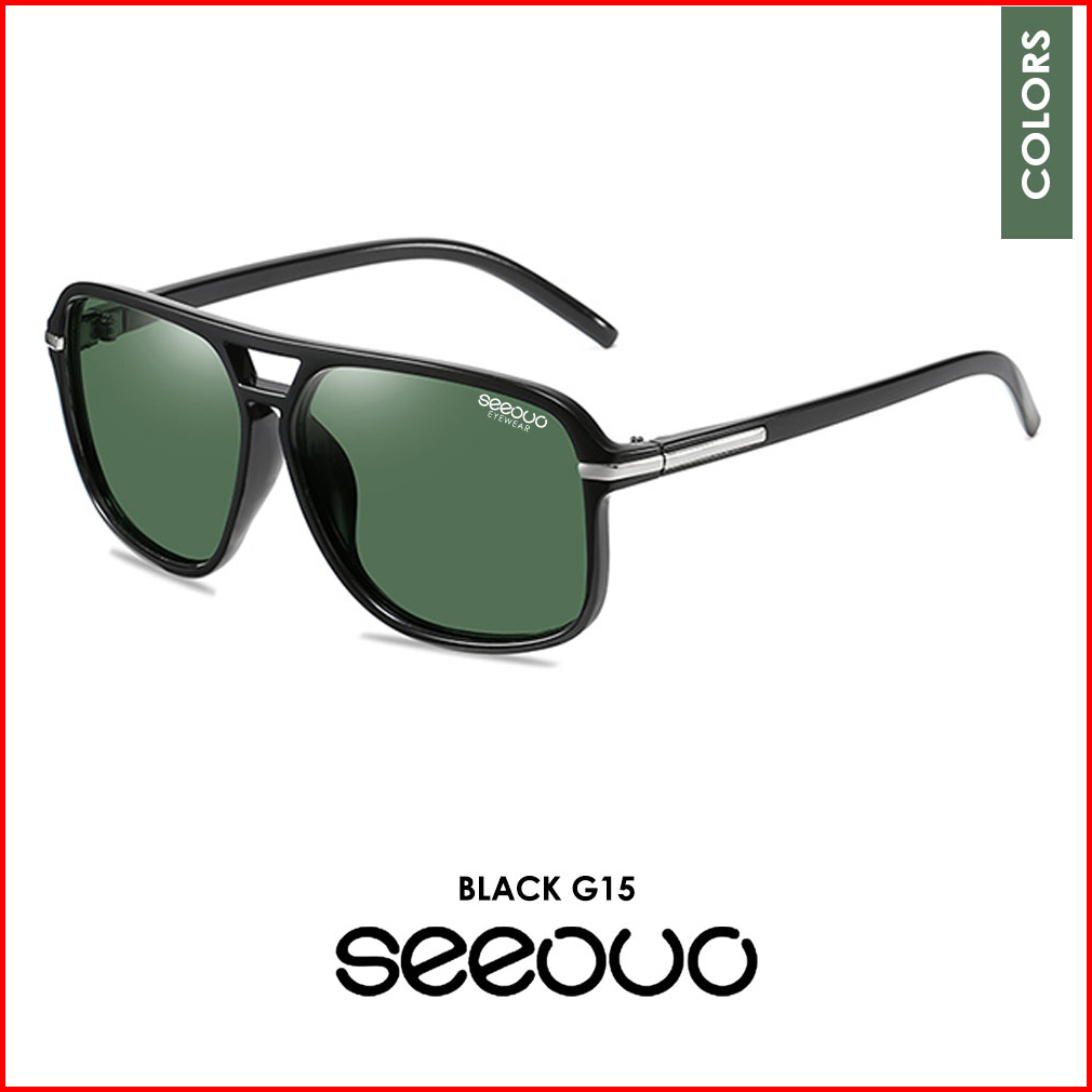 Seeouo Kacamata Hitam Sunglasses Polarized Anti Silau Uv400 Kotak Double Bridge Metal Tr90 Fashion Laki Laki 66106