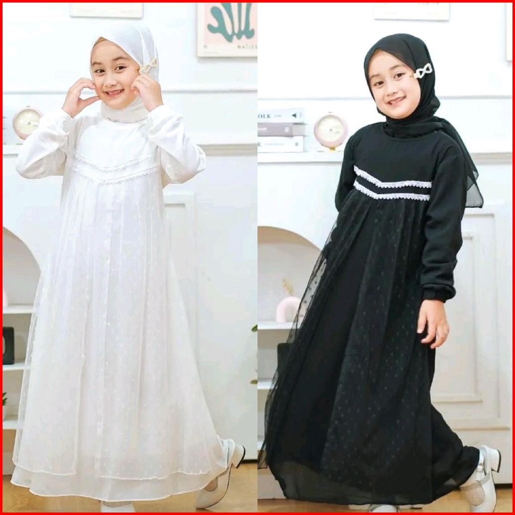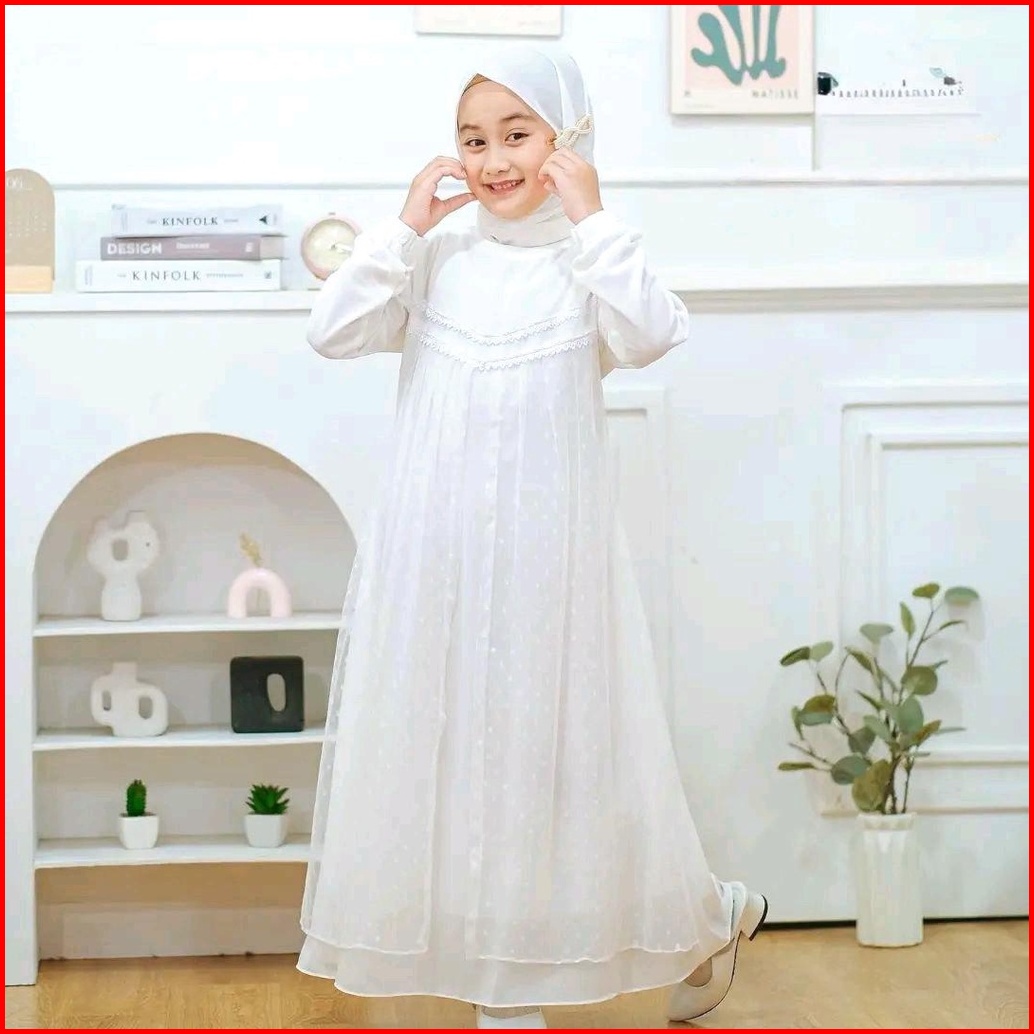 Shafa Dress Kids Free Jilbab Usia 2-13 Tahun Uk S M L Xl Bahan Ceruty Baby Dol Gamis Anak Perempuan