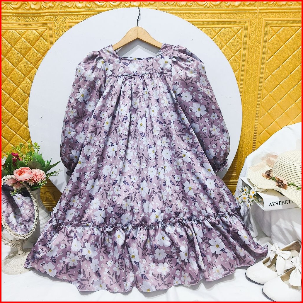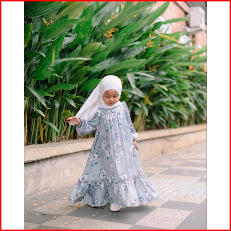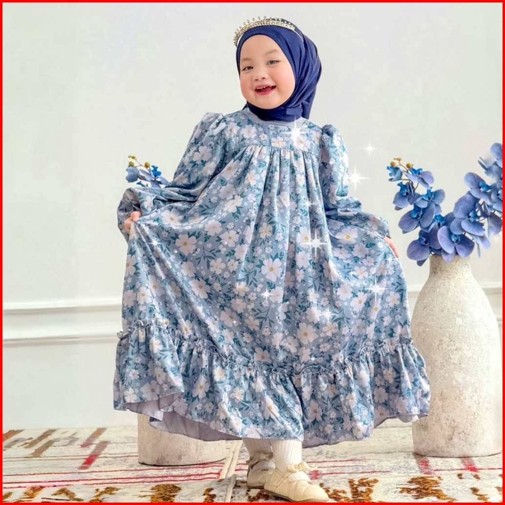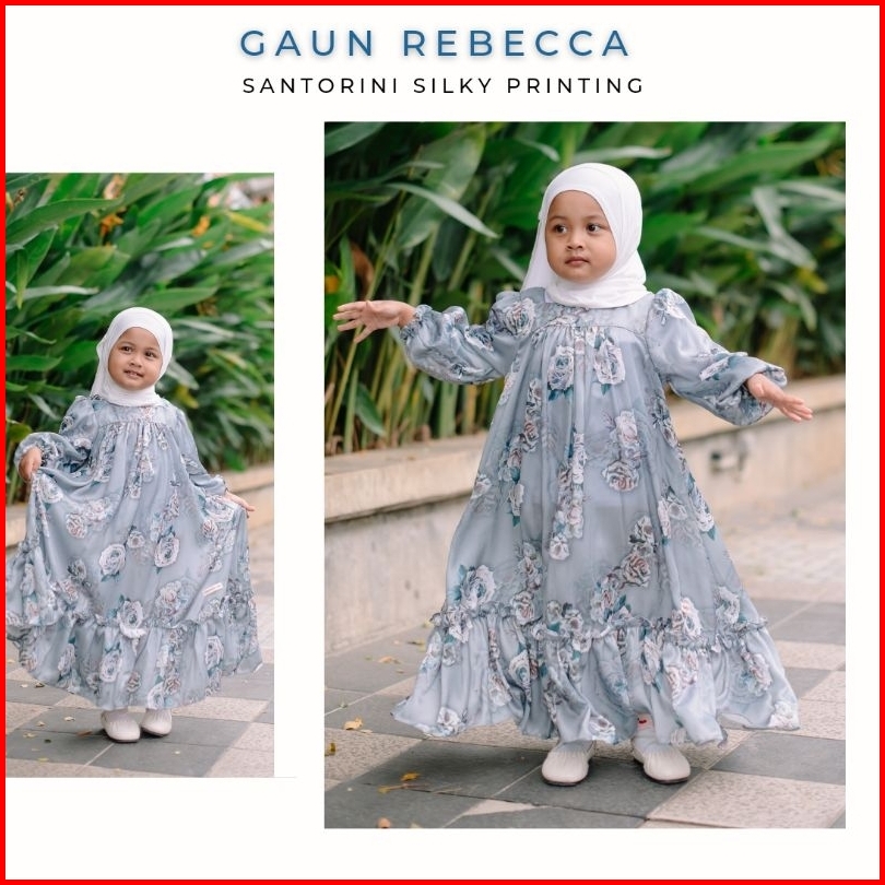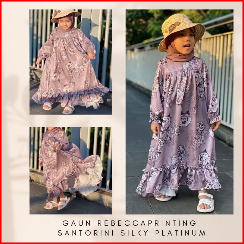Hallybaba Kids - Gamis Anak Perempuan Rebecca Silky Printing Gaun Anak Perempuan Santorini Silky Printing 1-10th Dress A