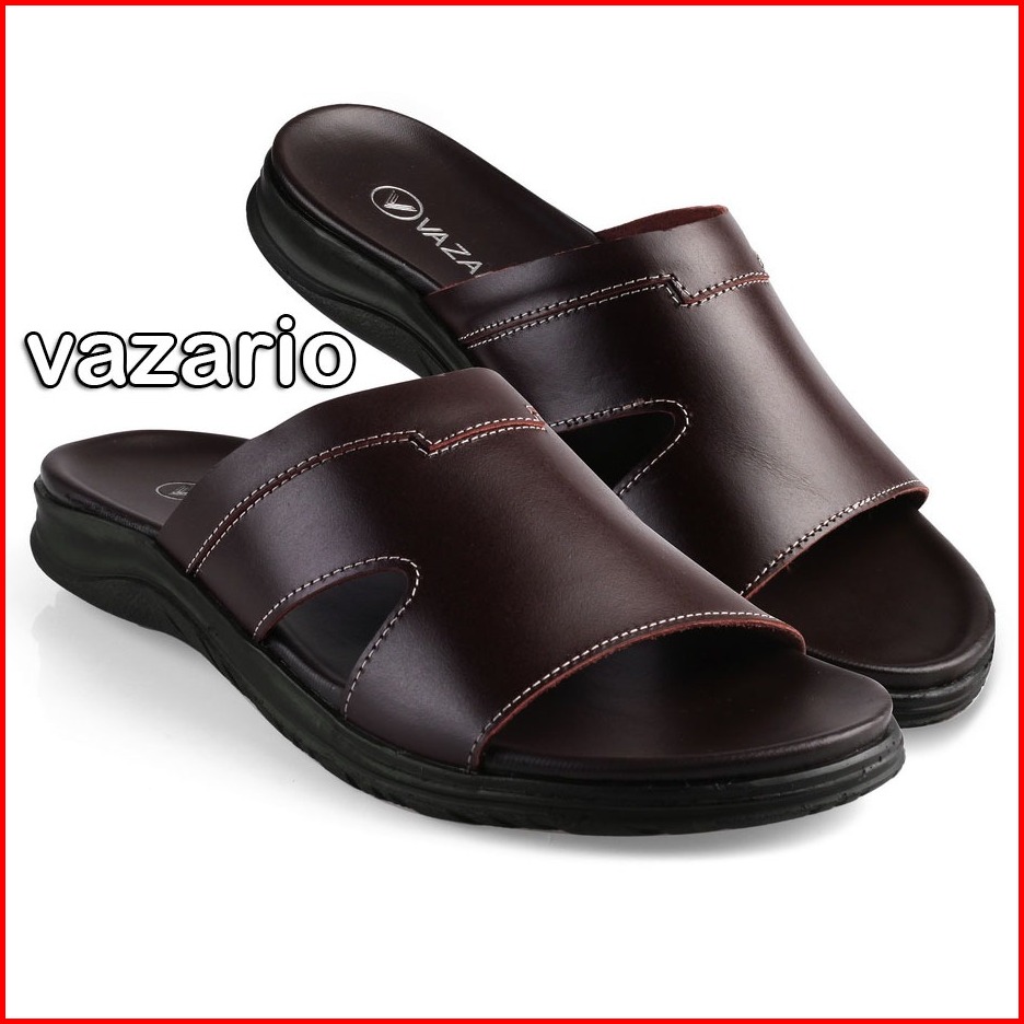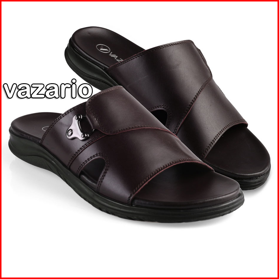 Vazario Sandal Kulit Pria Selop Kokop Brown Nyaman
