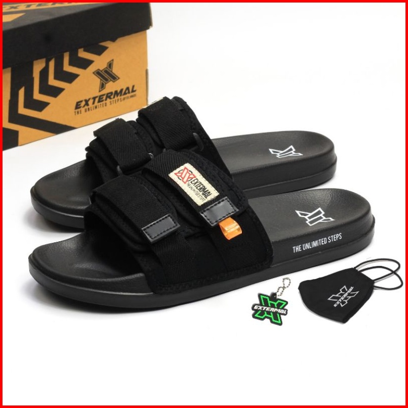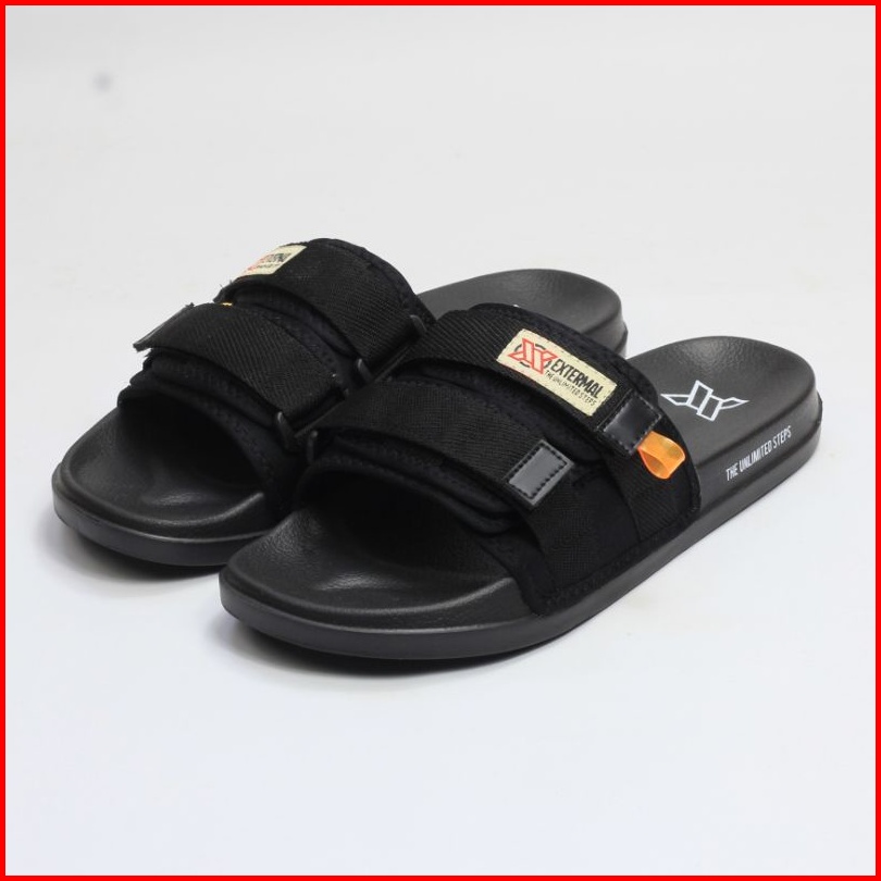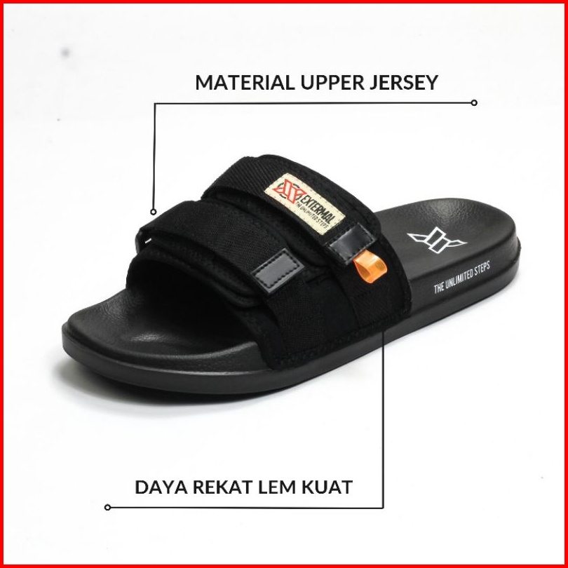 Extermal - 051 Black - Sendal Selop Sandal Slide Pria Terbaru Casual Cowok