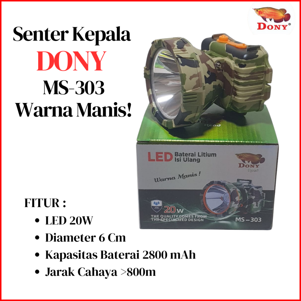 Senter Kepala Dony Ms-303 Warna Manis Led 20w Loreng Cahaya Putih Dan Kuning