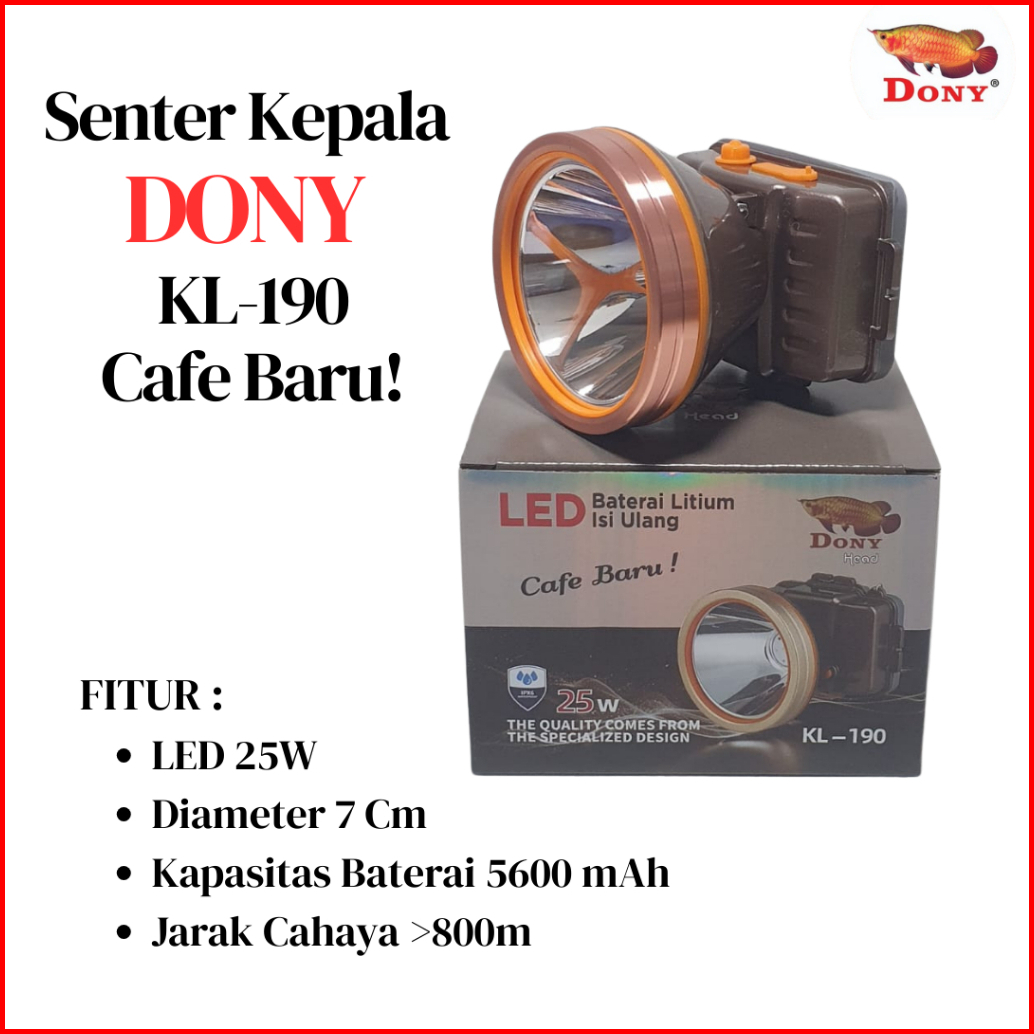 Senter Kepala Dony Kl-190 Cafe Baru Led 25w Baterai Dapat Diganti Cahaya Putih Dan Kuning