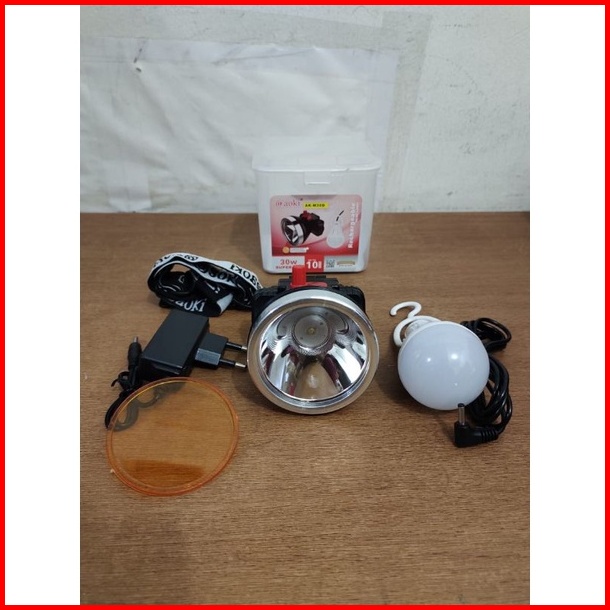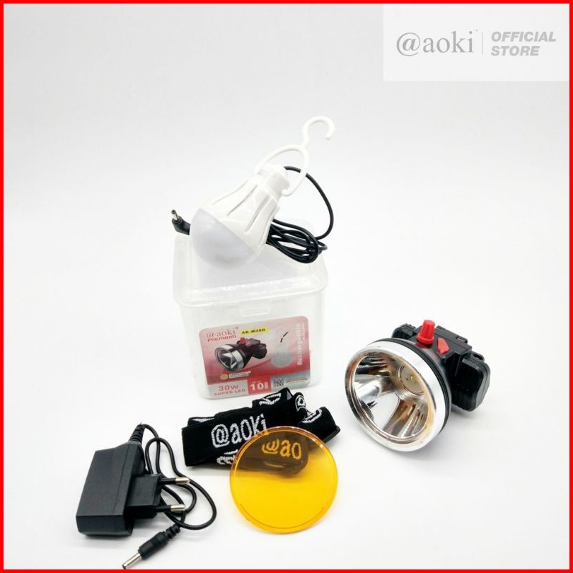 Senter Kepala Cas Aoki 30w Ak M30d Dimmer Tombol Putar Putih Lensa