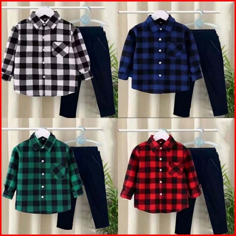 Diskon Setelan Kemeja Anak Laki Laki Kemeja Flanel Celana Chinos Panjang 1-14 Tahun Setelan Kemeja Anak Laki Laki 3 4 5