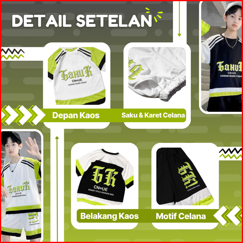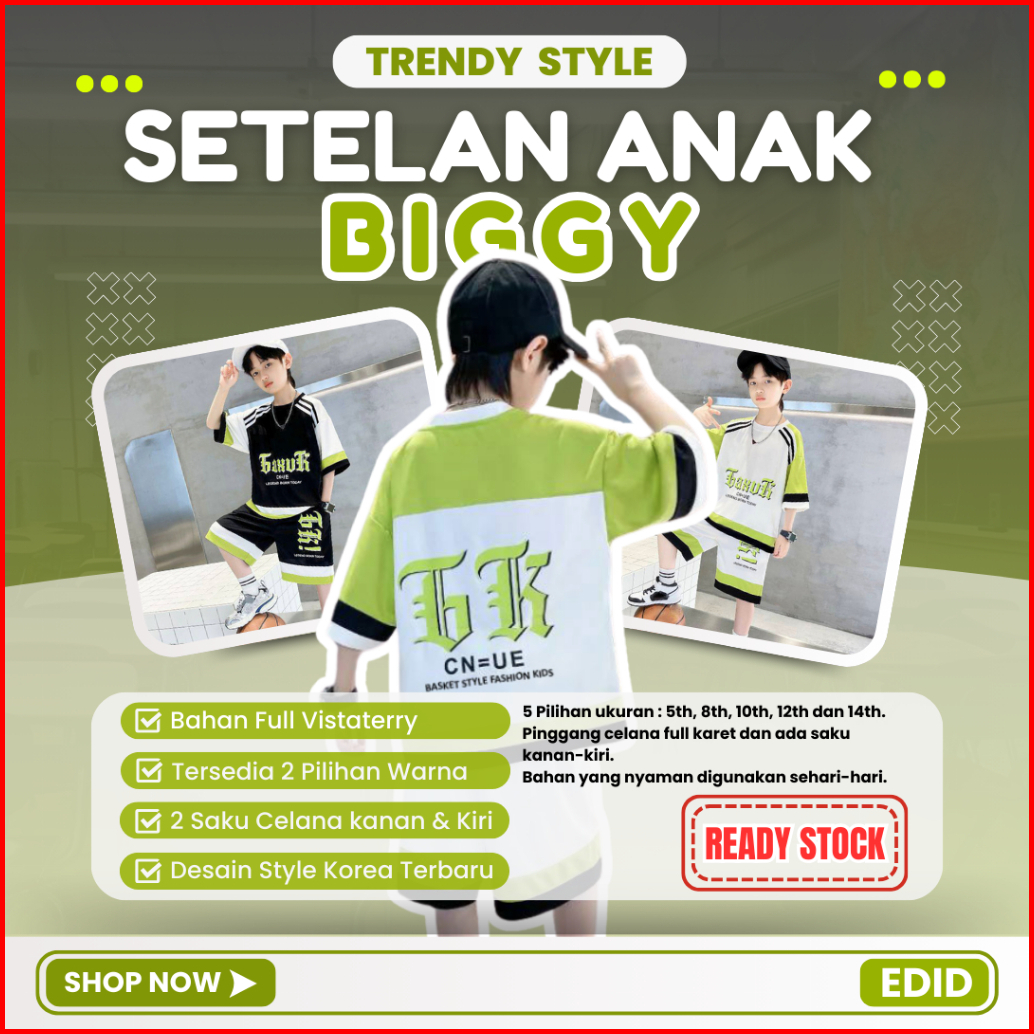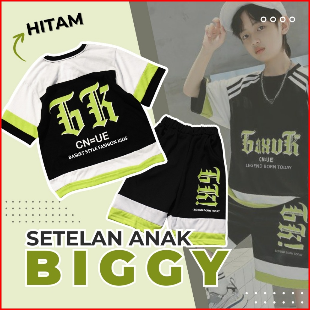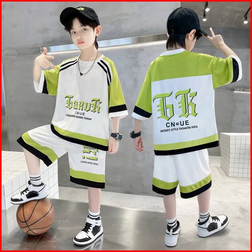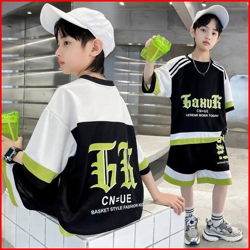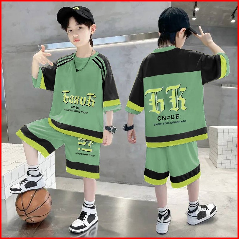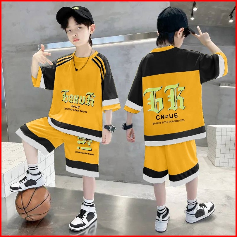 Setelan Anak Laki Laki Biggy Lengan Pendek Baju Kaos Motif Anak Usia 6-14 Tahun Set Olahraga Basket