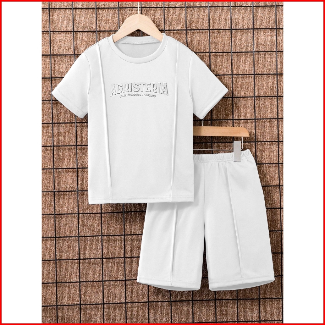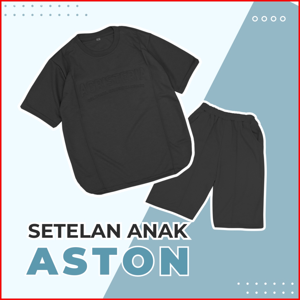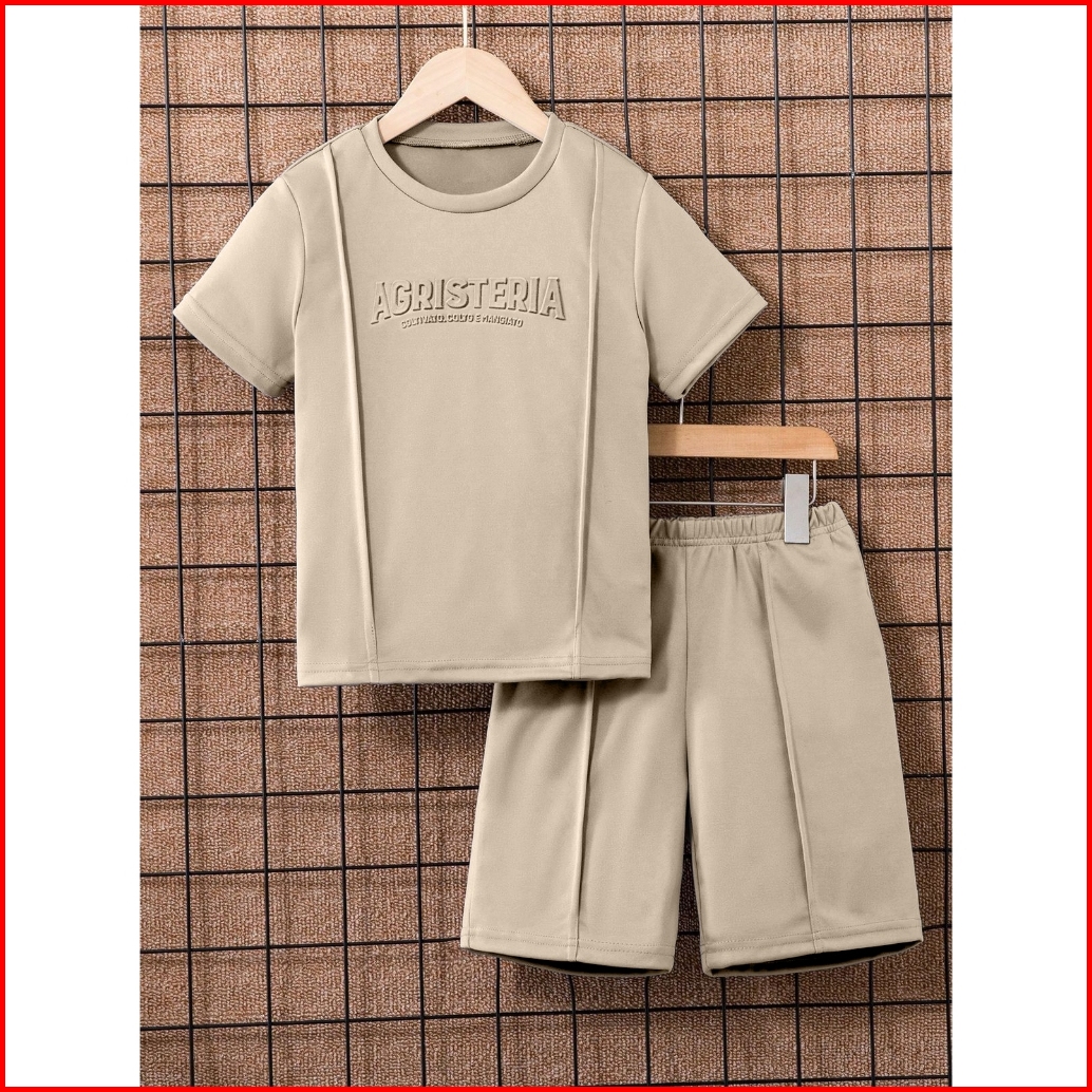 Mokokomo - Setelan Anak Laki-laki Motif Embos Aston Lengan Pendek Usia 7-8 9-10 11-12th Fashion Kids
