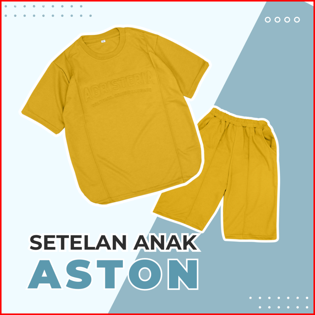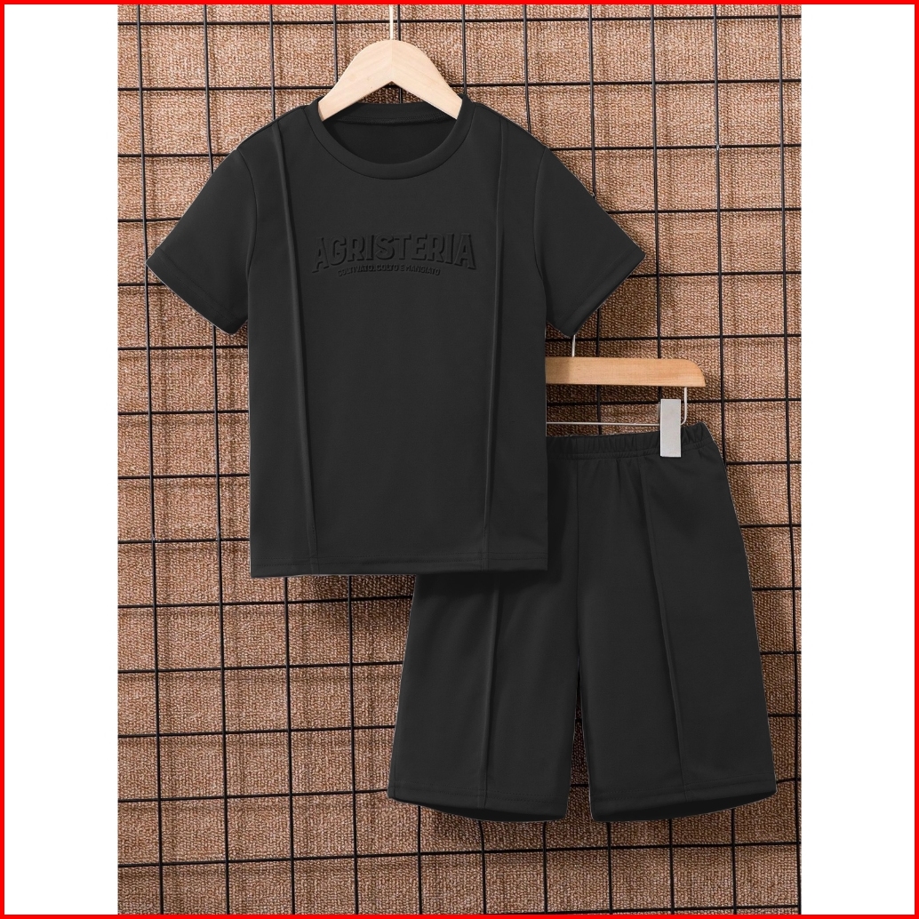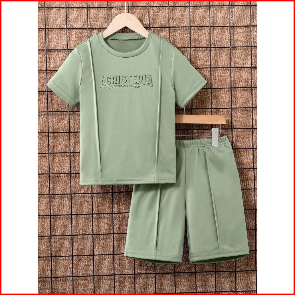 Mokokomo - Setelan Anak Laki-laki Motif Embos Aston Lengan Pendek Usia 7-8 9-10 11-12th Fashion Kids