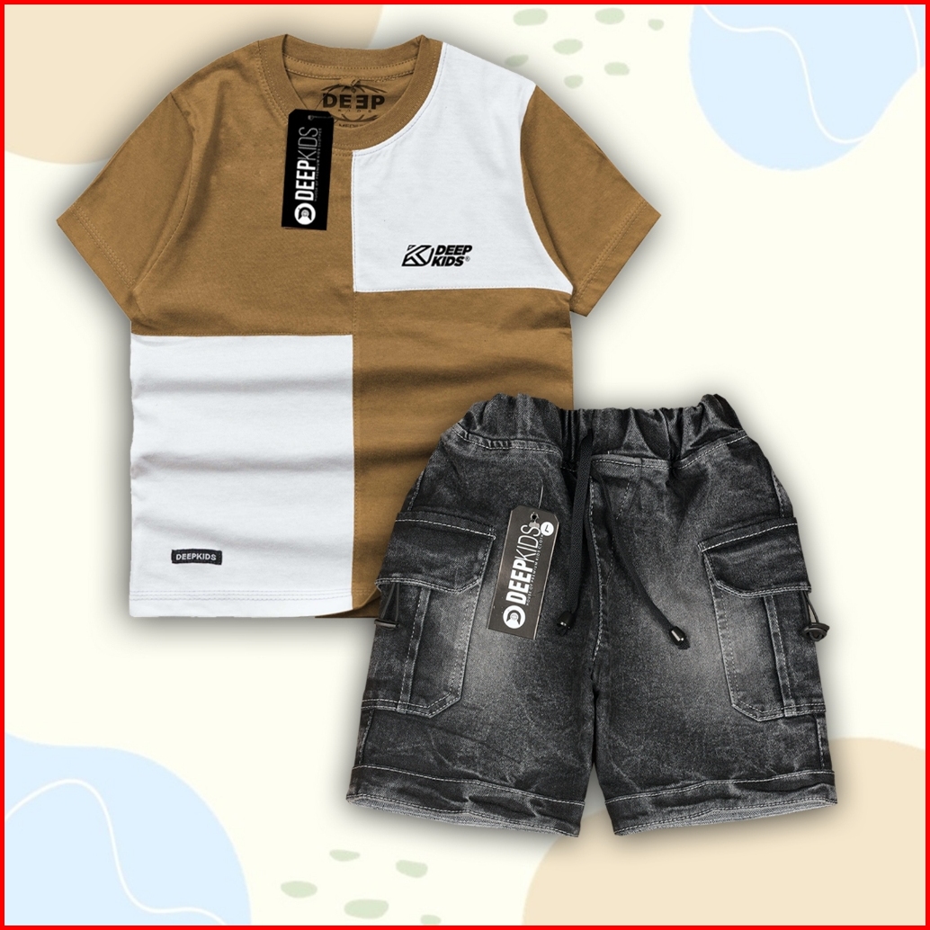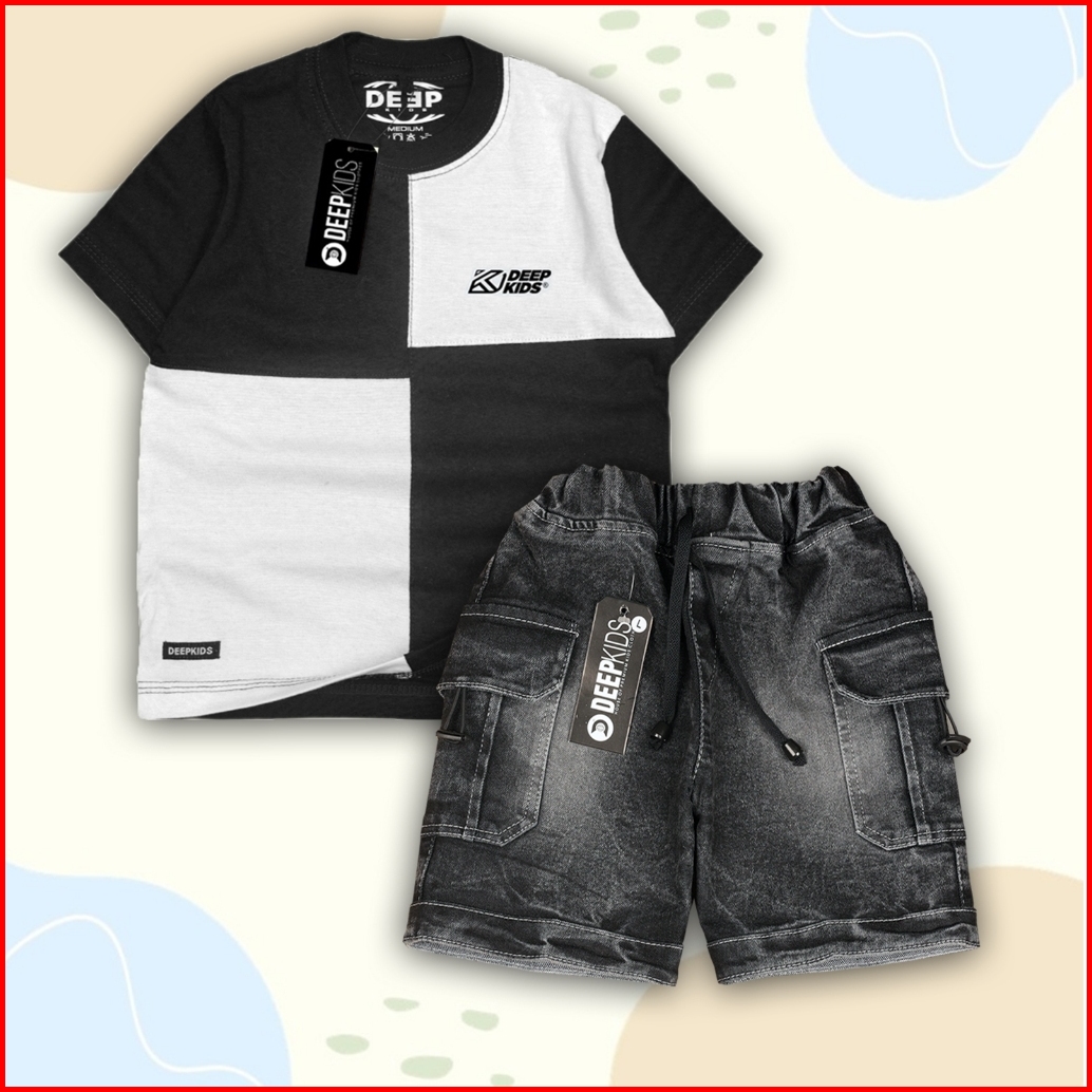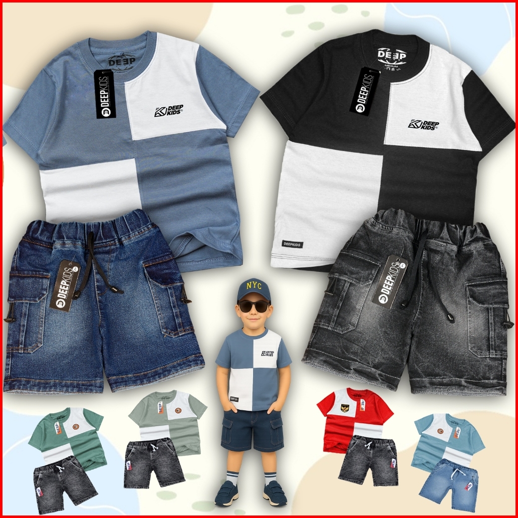 Setelan Anak Laki Laki Distro Kaos Dan Celana Jeans Bahan Cotton 30s Dan Jeans Premium Set Jeans Pendek Enzo Shirt Usia