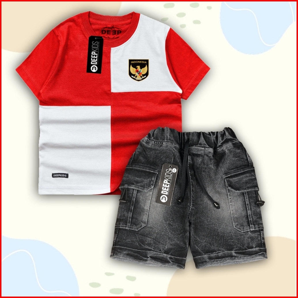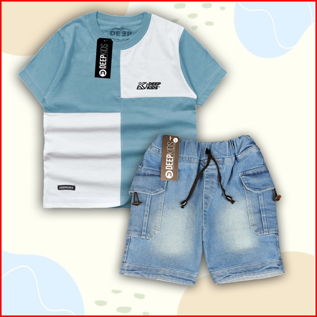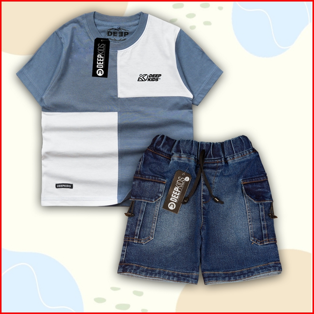 Setelan Anak Laki Laki Distro Kaos Dan Celana Jeans Bahan Cotton 30s Dan Jeans Premium Set Jeans Pendek Enzo Shirt Usia