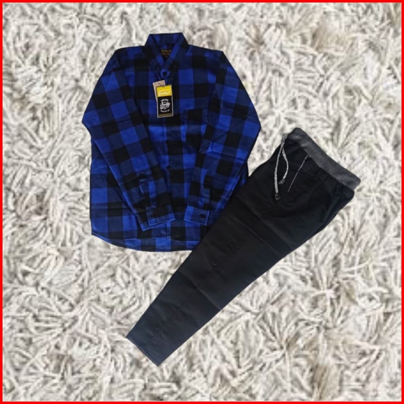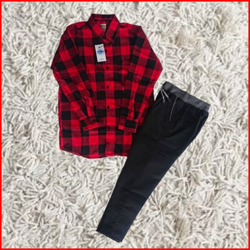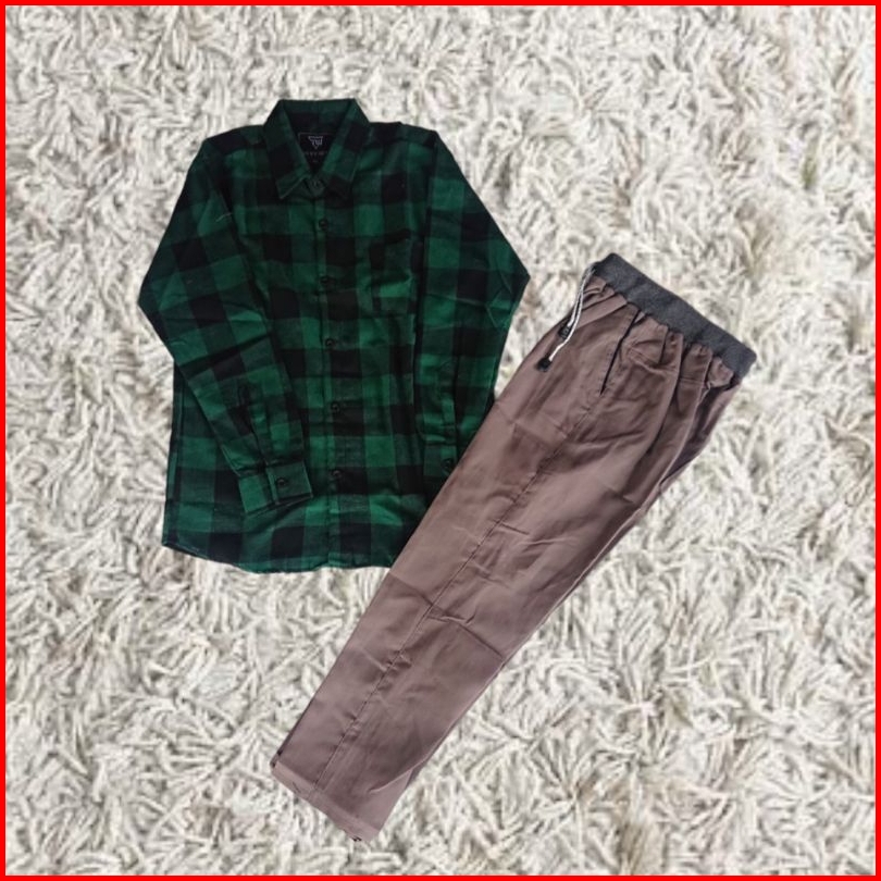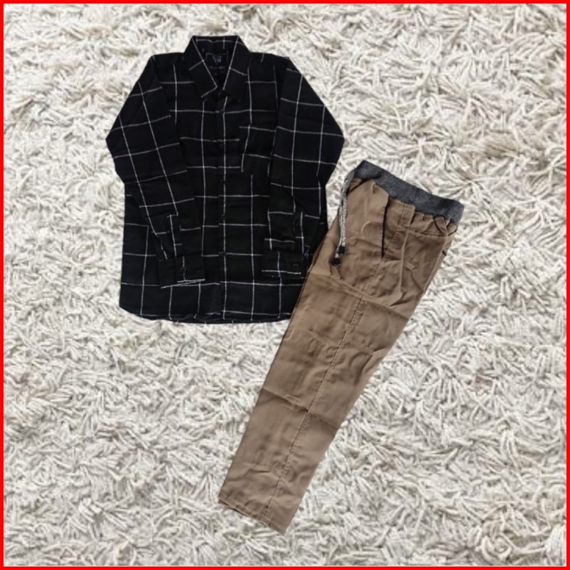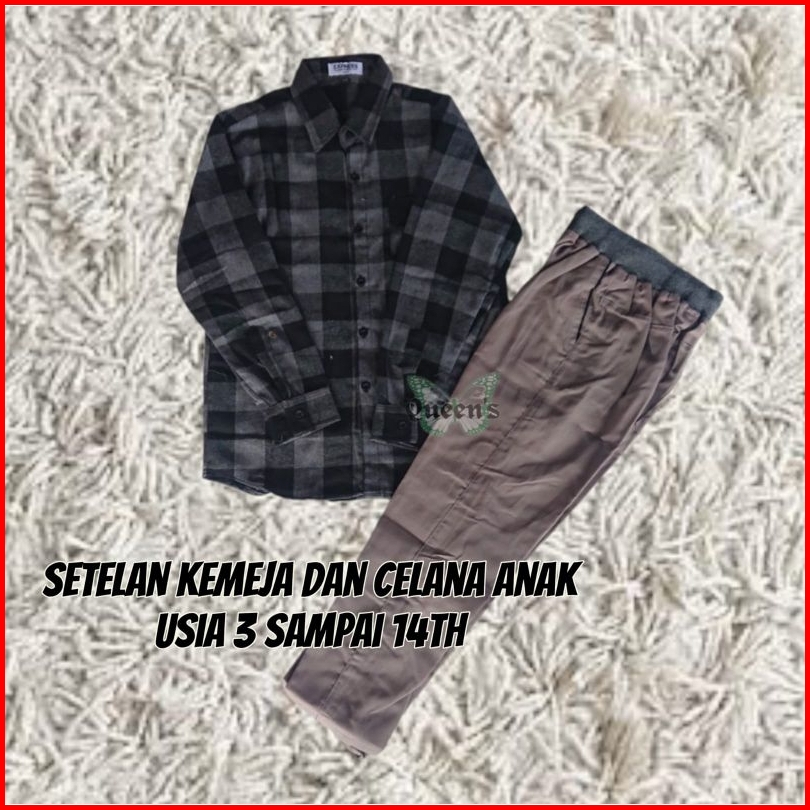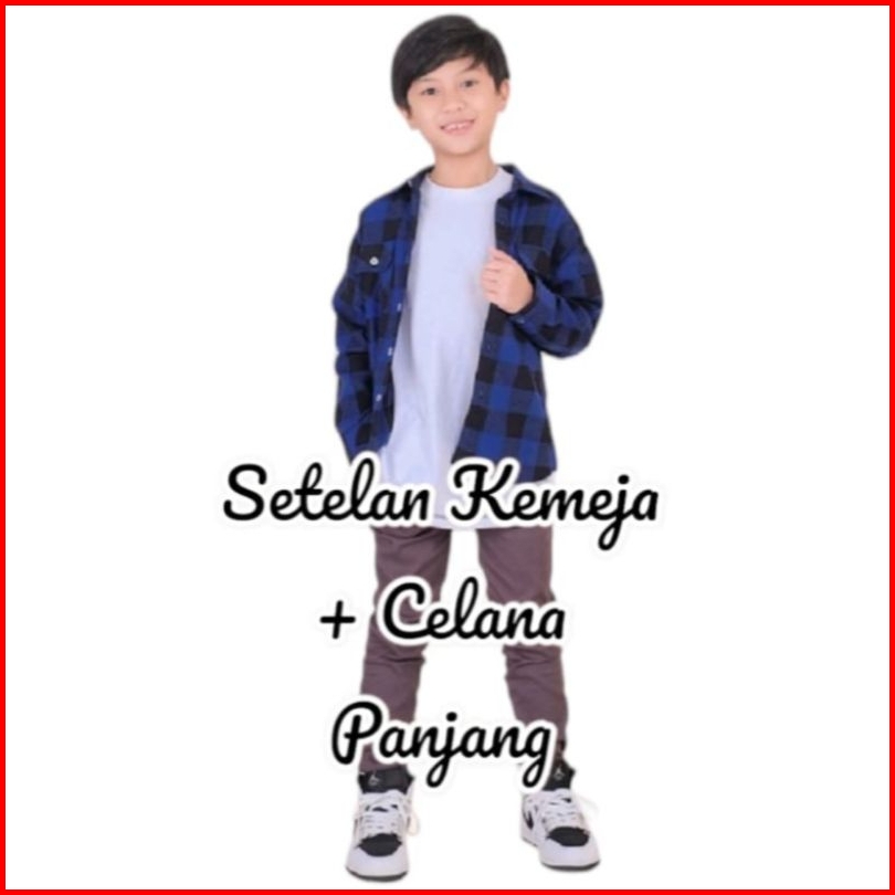 Setelan Kemeja Celana Panjang Anak Flanel Anak Usia 3-14th
