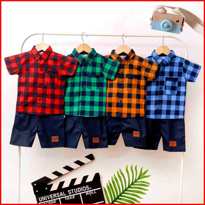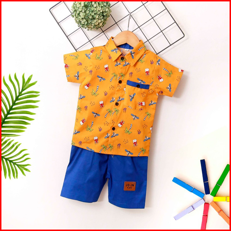Setelan Kemeja Anak Laki Laki Usia 1-8 Tahun Katun Strech