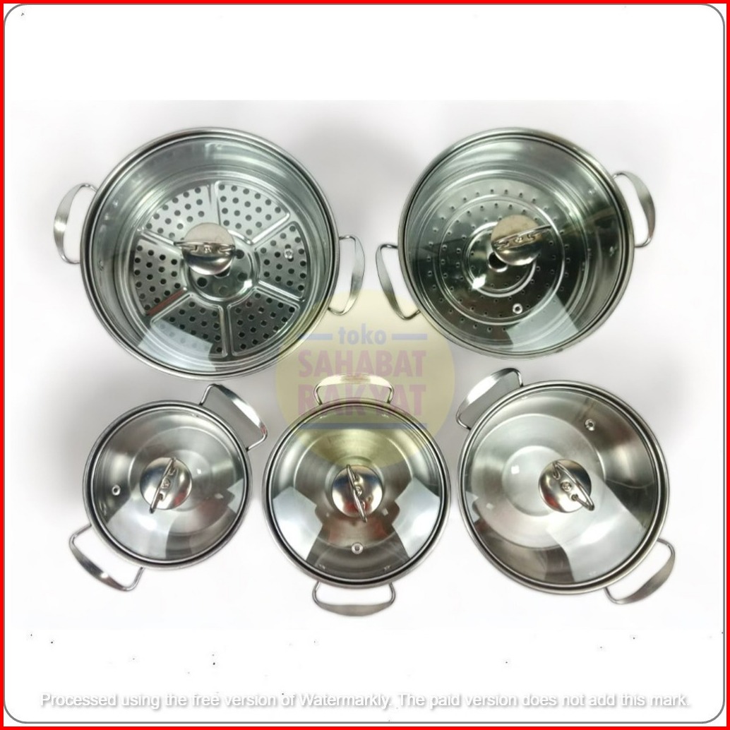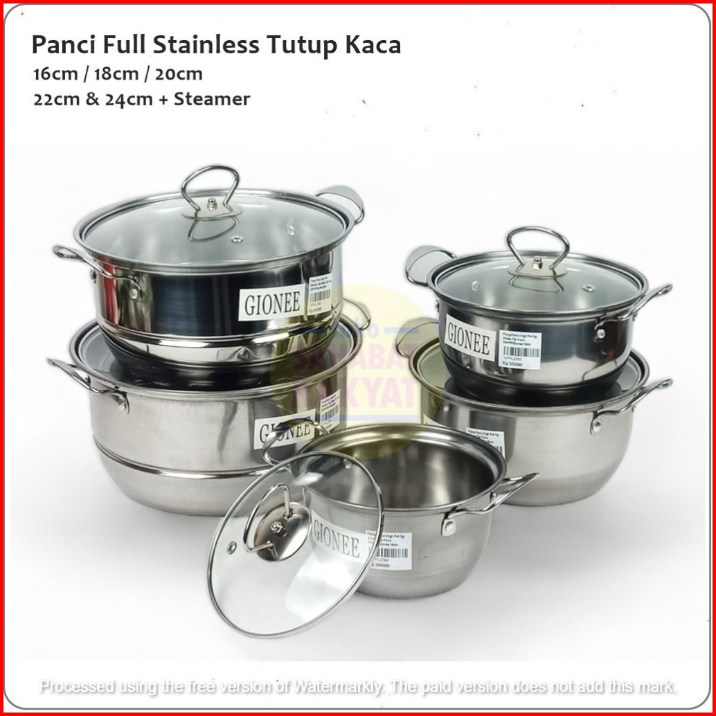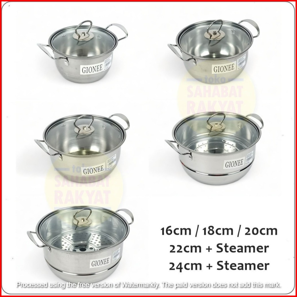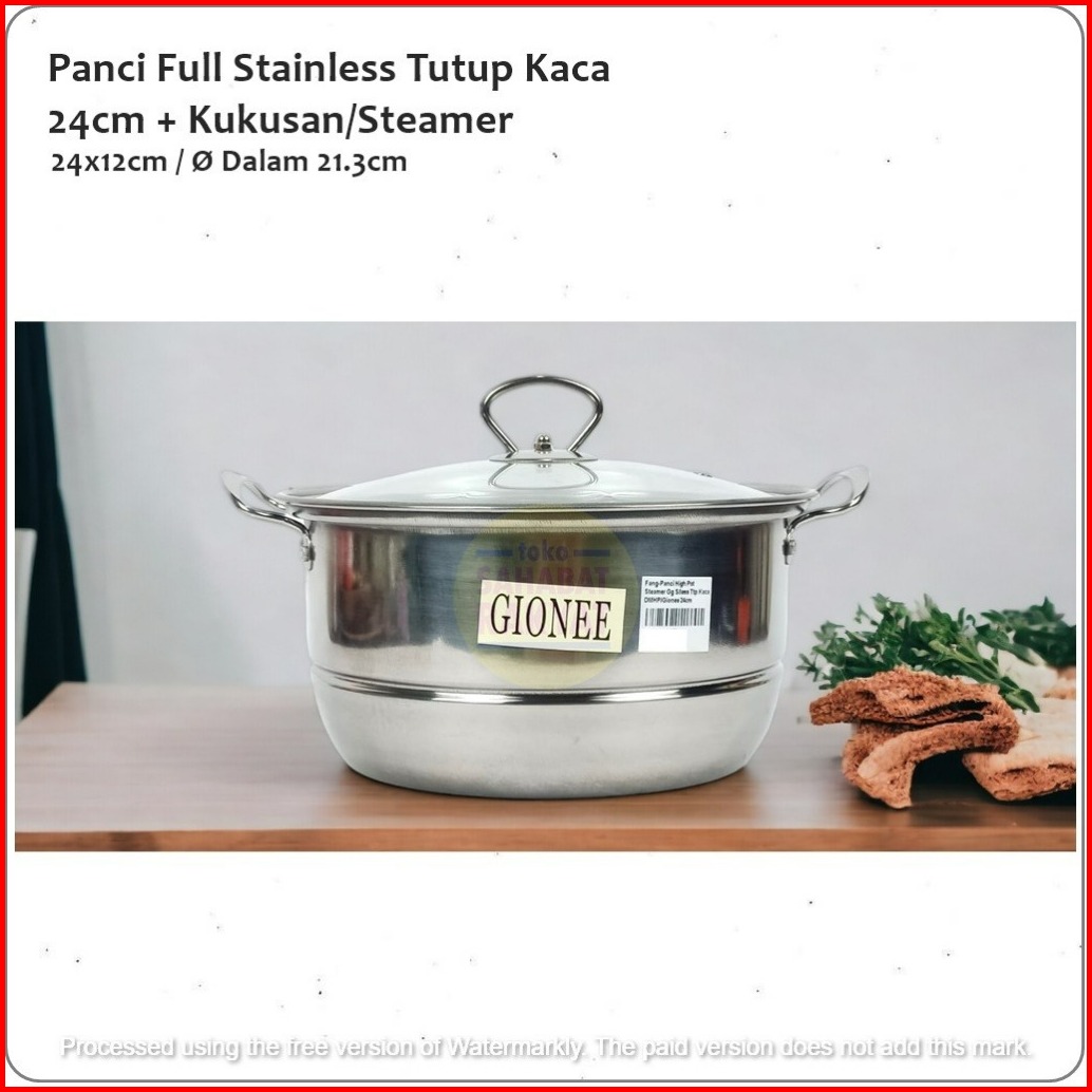 Panci Steamer Kukusan High Pot Stainless Tutup Kaca Gionee 24cm
