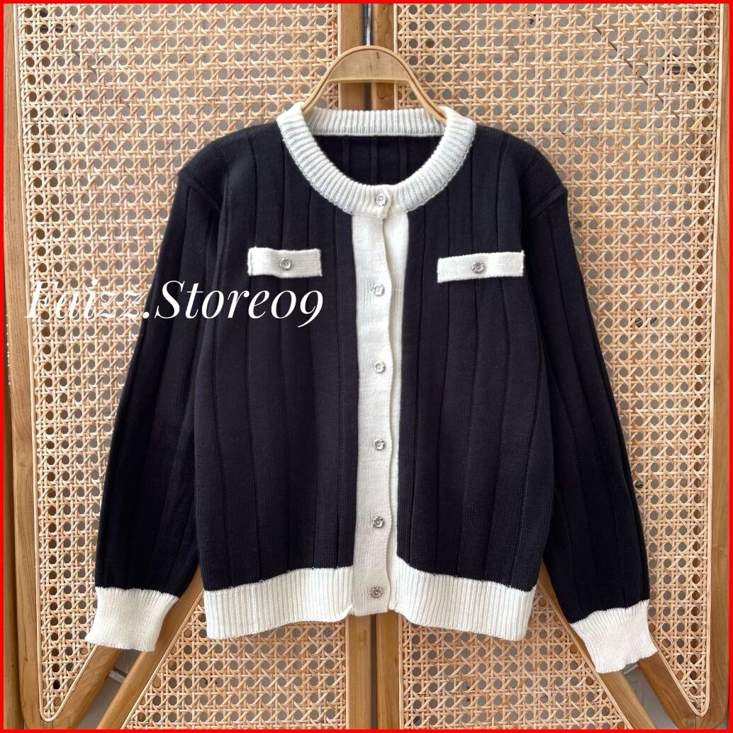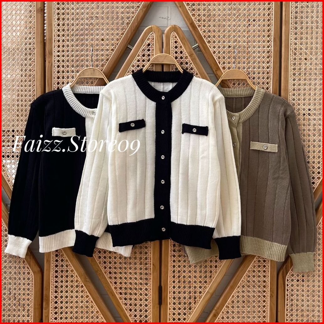 Amisha Cardigan Rajut Stripe Kancing Salur Wanita Lengan Panjang