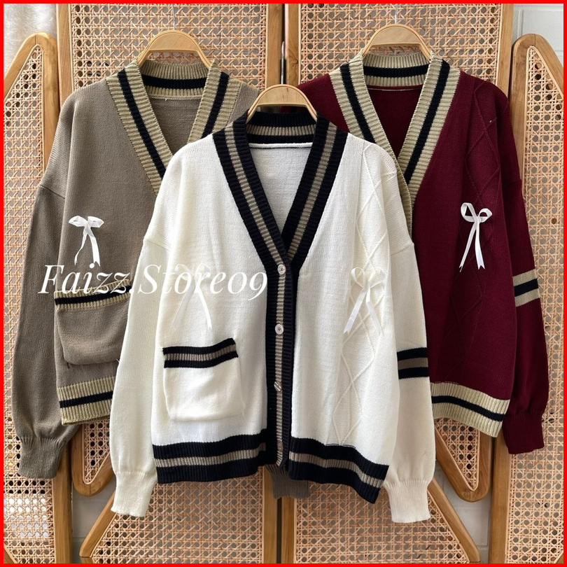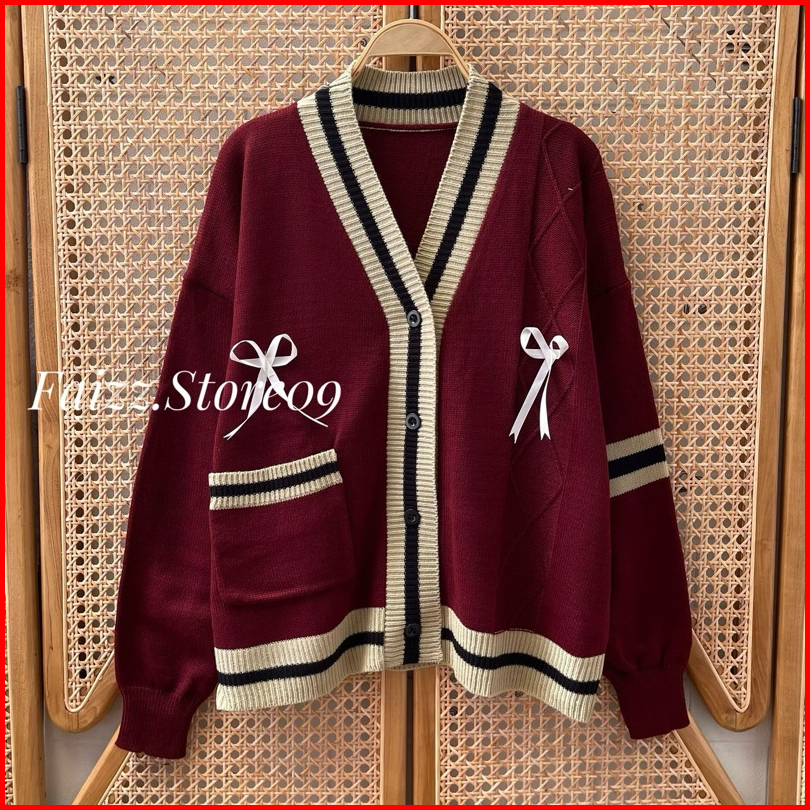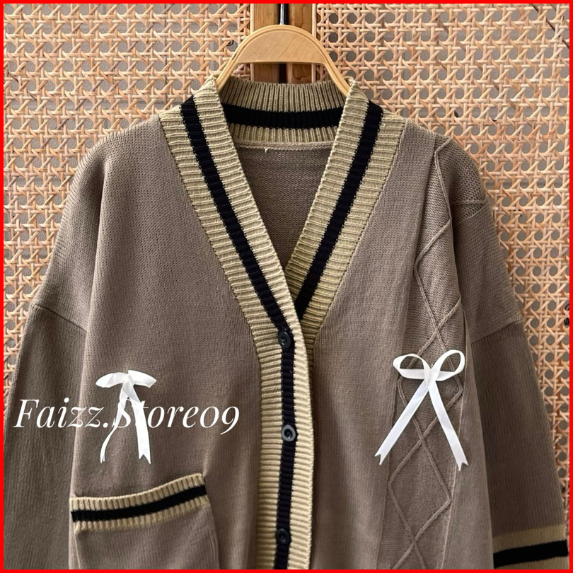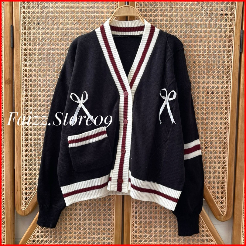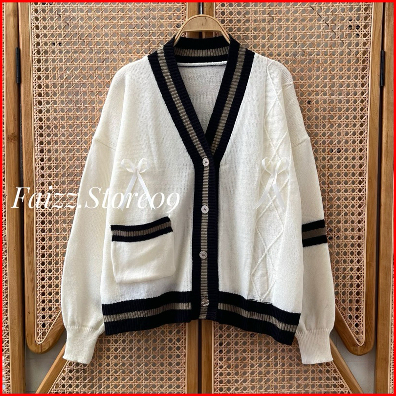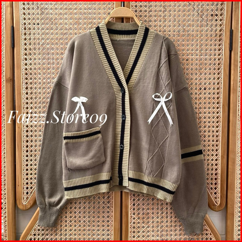 Lita Outer Knitwear Baju Lucu Cardigan Rajut Kancing Motif Pita Premium Atasan Wanita Korean Style