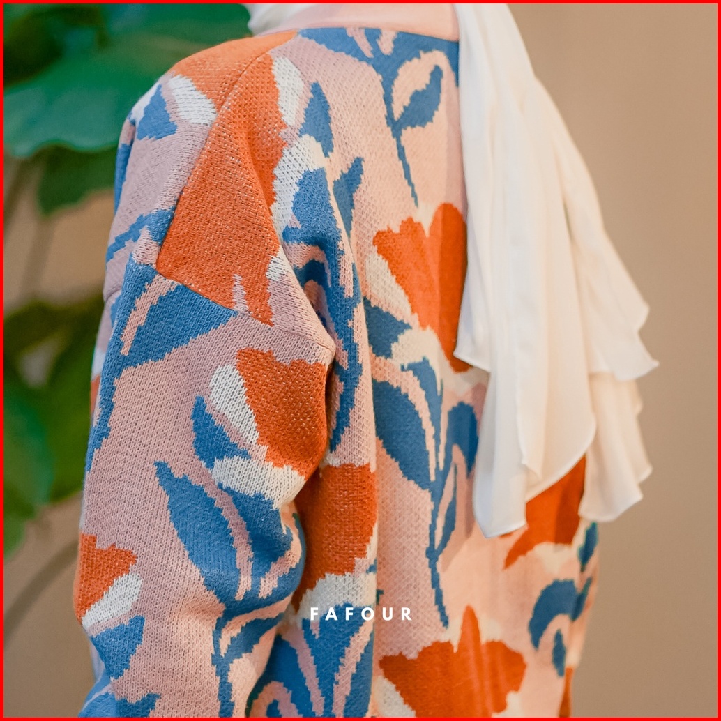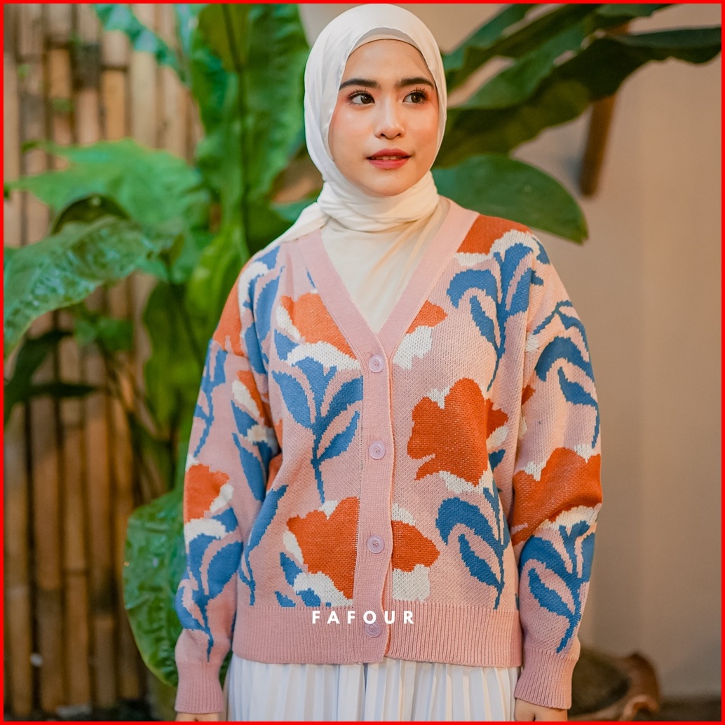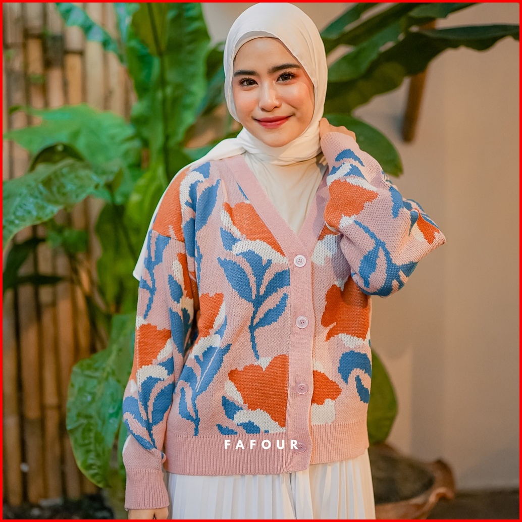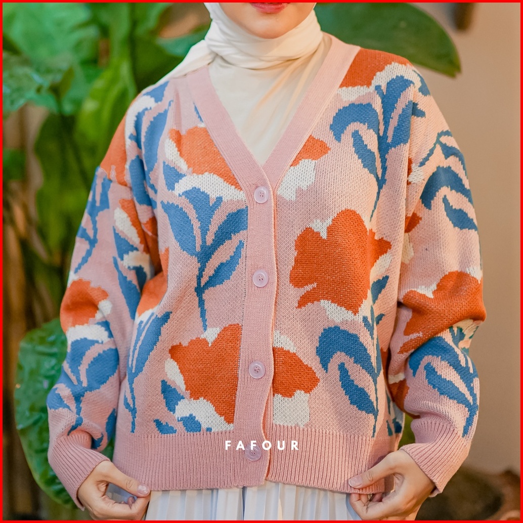 Fafour Delila Cardigan Rajut Wanita Bunga Tulip Flowers Oversize Knitwear