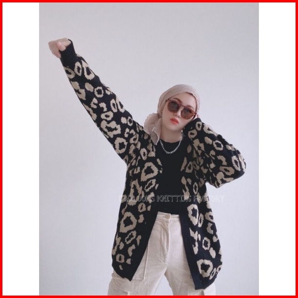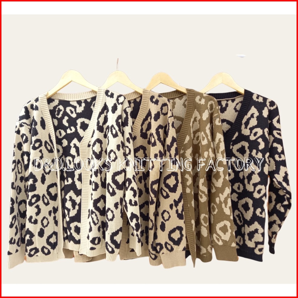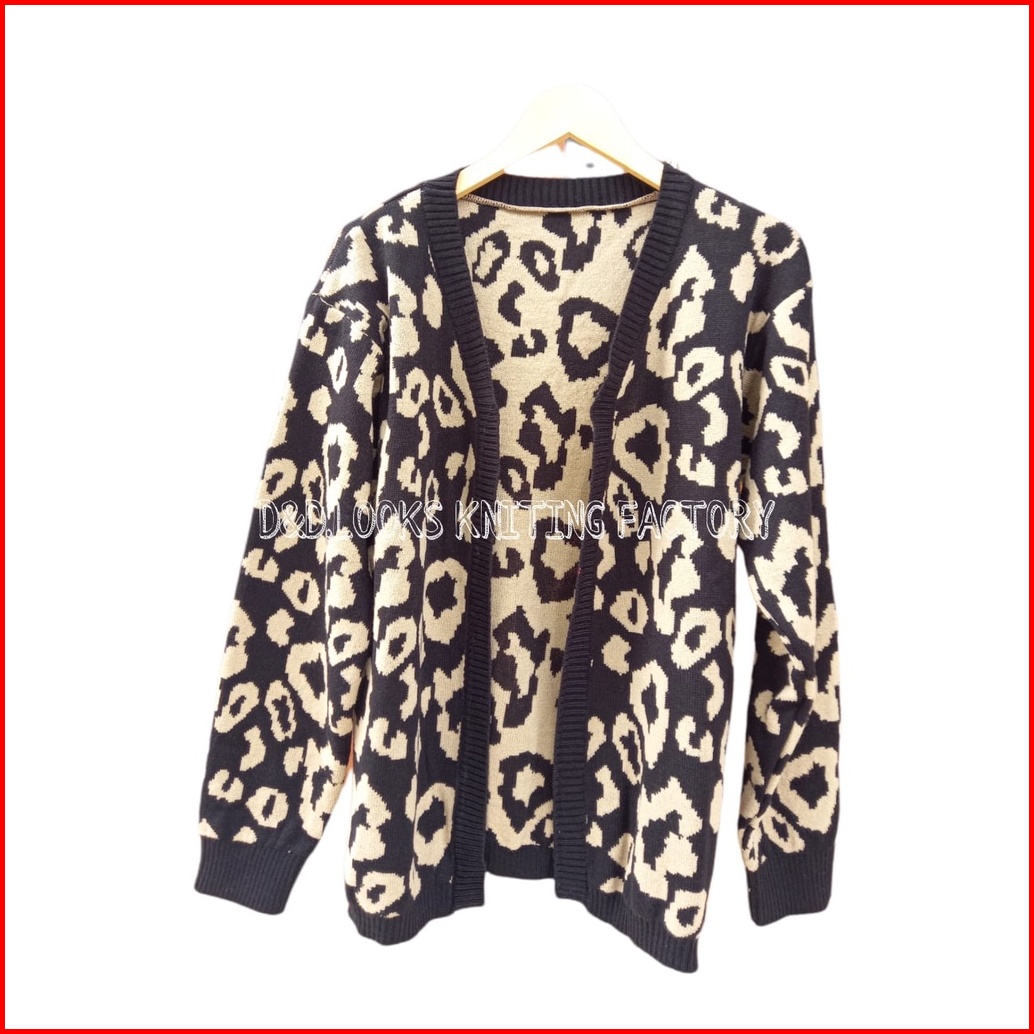 Cardigan Rajut Leopard Cardigan Rajut Premium Cardigan Rajut Motif Hitam-mocca