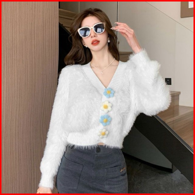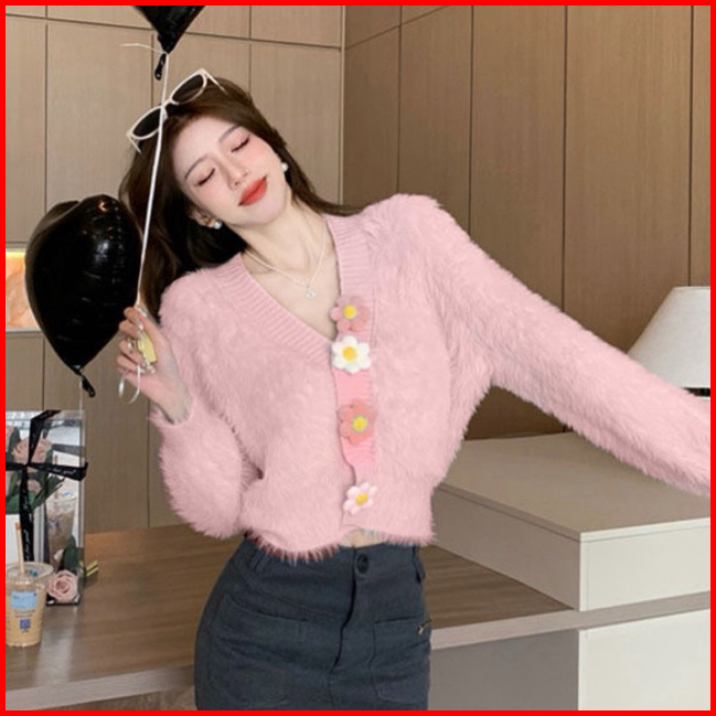 Der.hannah Nayeon Cardigan Crop Rajut Knit Korea Import