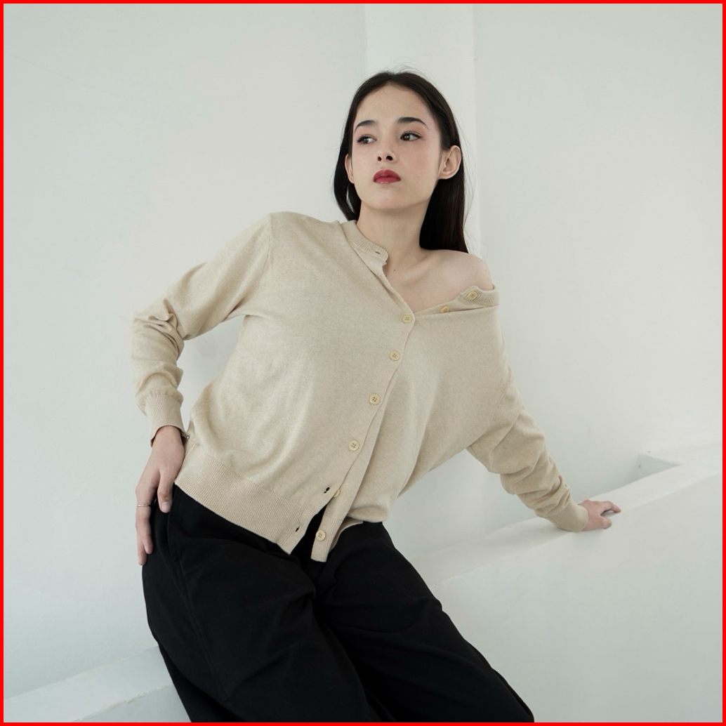 Basic Knit Cotton Cardigan Shopinkae Cardigan Rajut Basic Cotton Murah Outer Wanita Casual Simple Lengan Panjang