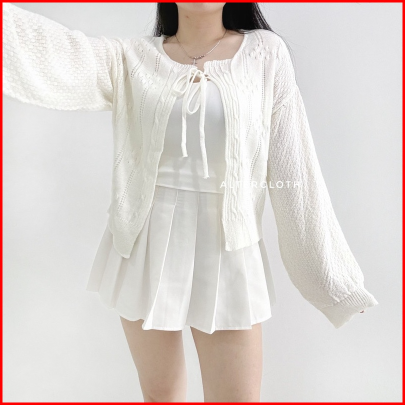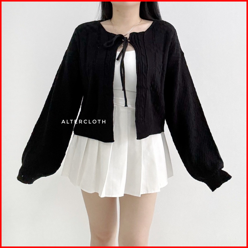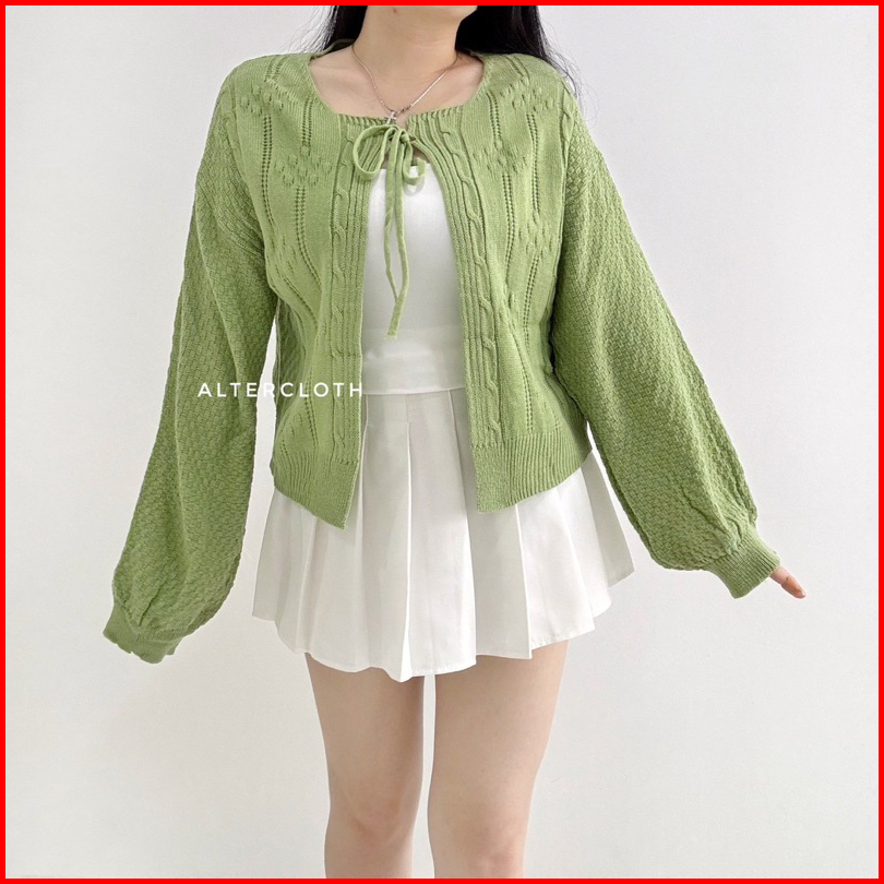 Alter.cloth - Ozzu Outer Atasan Wanita Korea Premium Knit Rajut Import Longsleeve Lengan Panjang Polos Plain Hijau Hitam