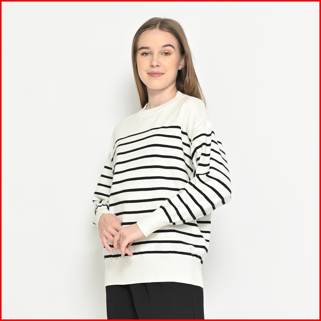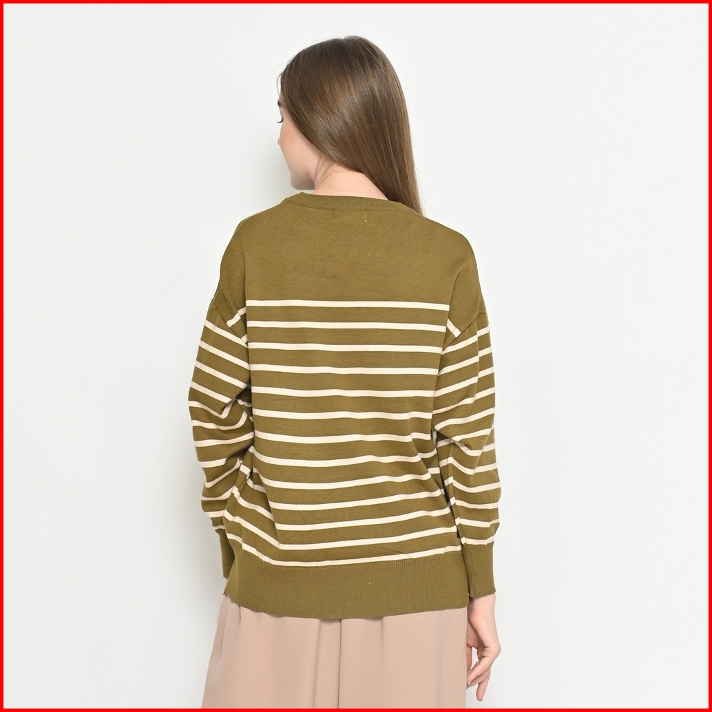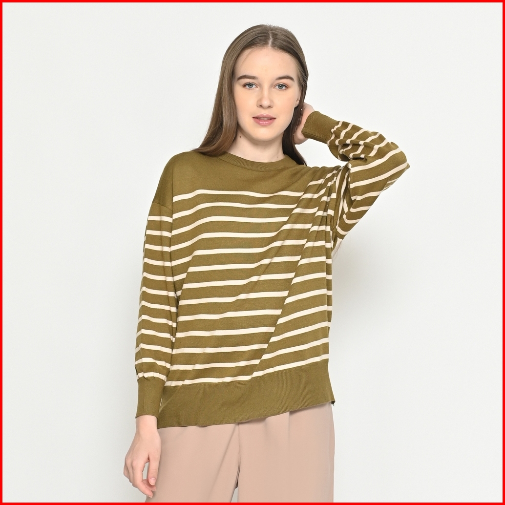 Queentin Sweater Rajut Casual Wanita 244 Knit Stripe Strecth Lengan Panjang