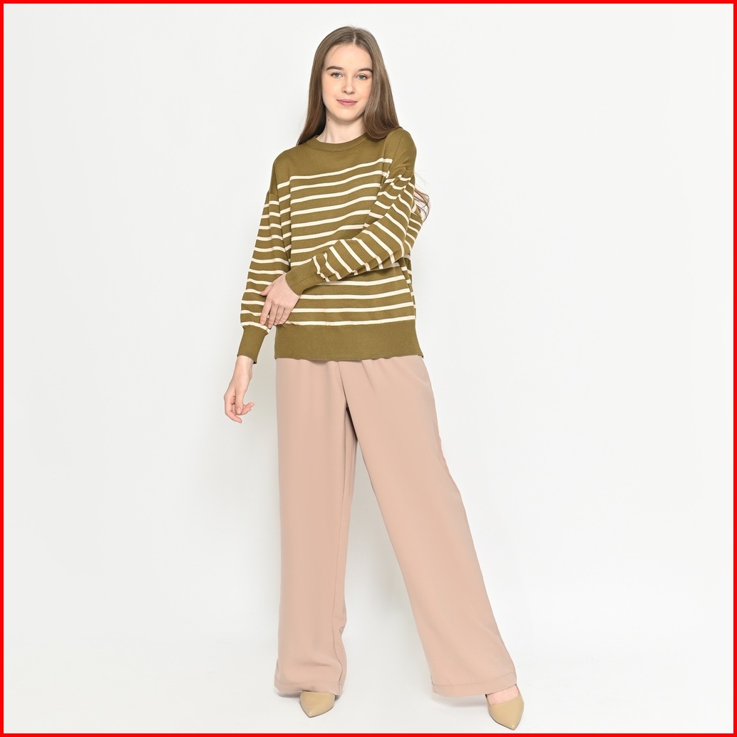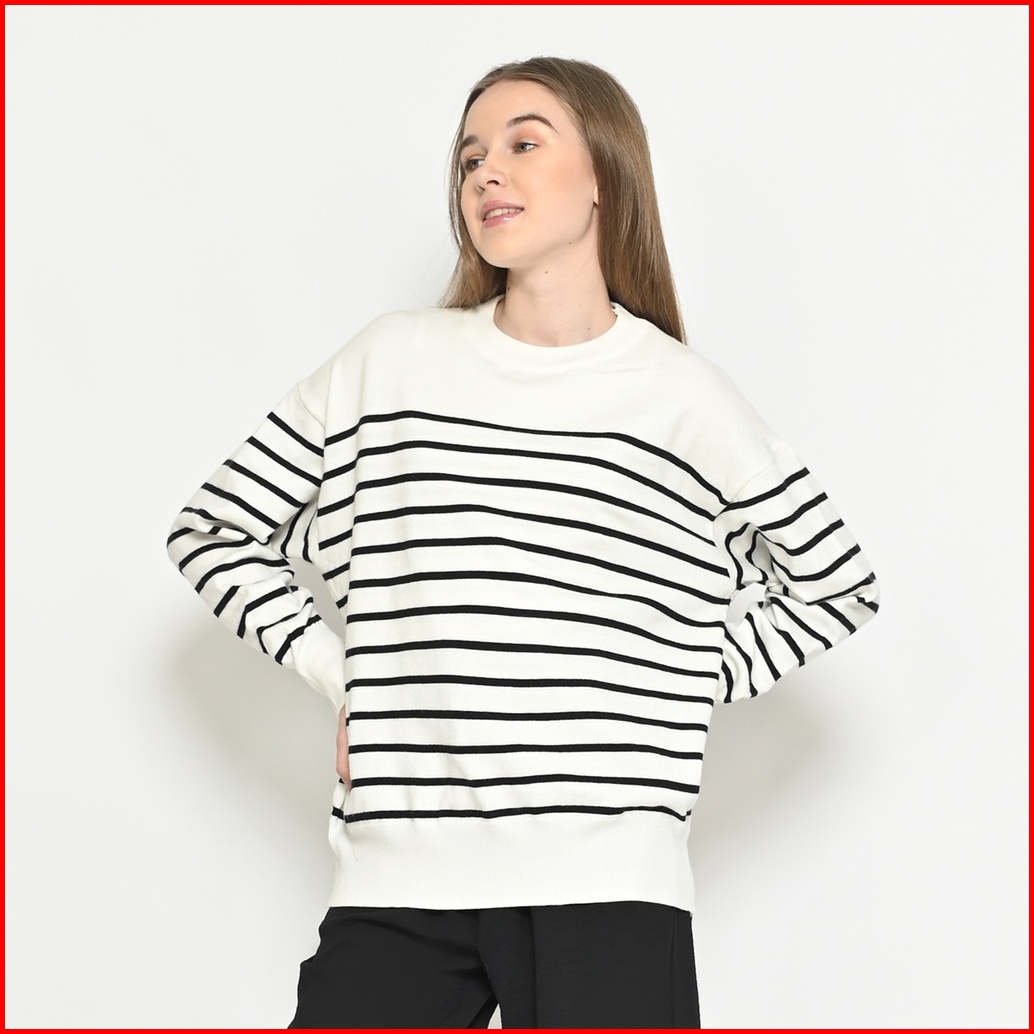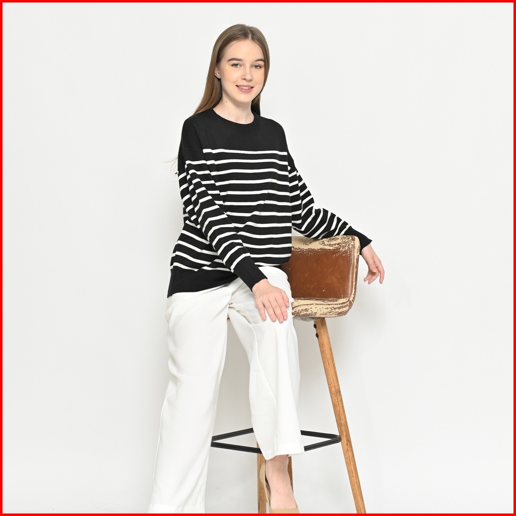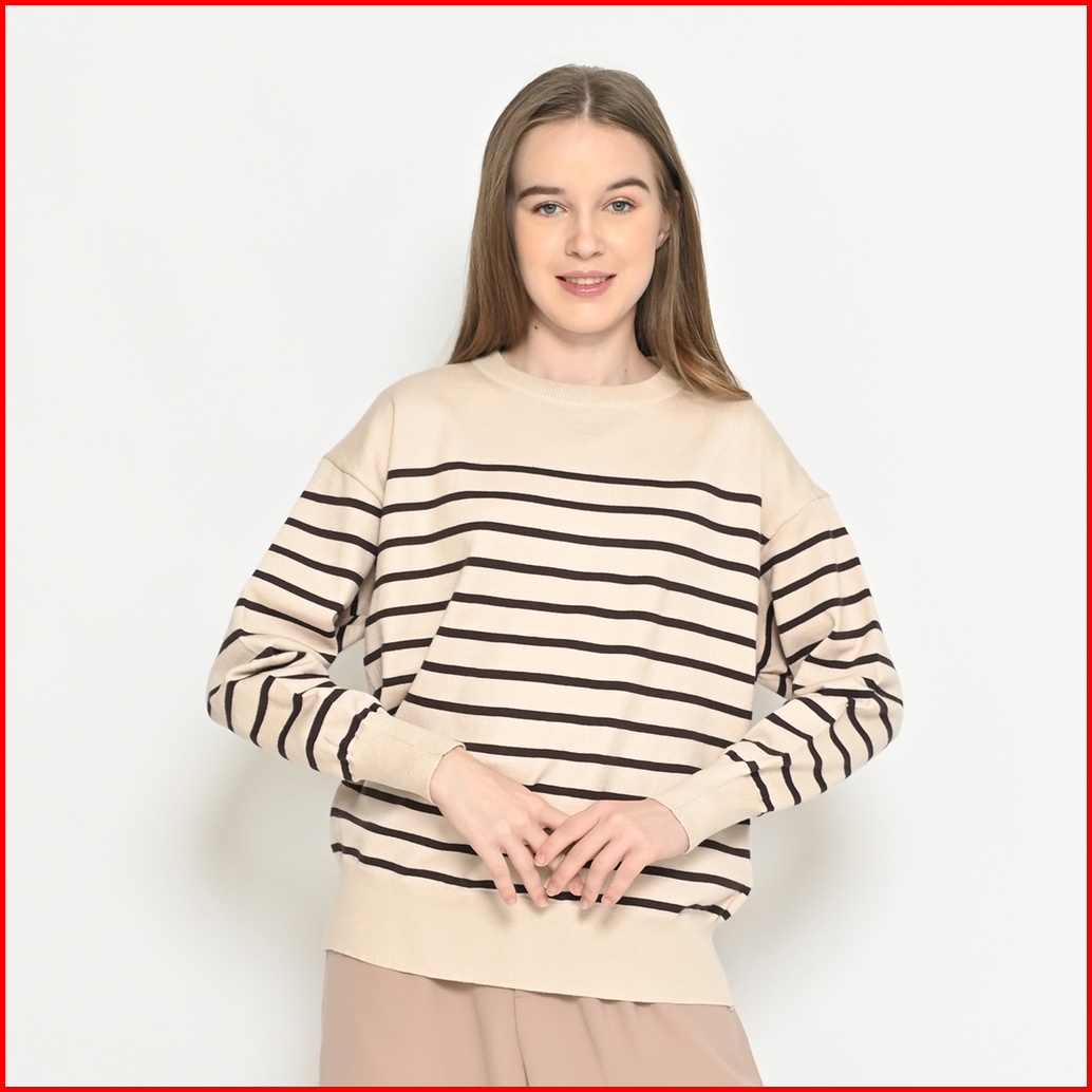 Queentin Sweater Rajut Casual Wanita 244 Knit Stripe Strecth Lengan Panjang