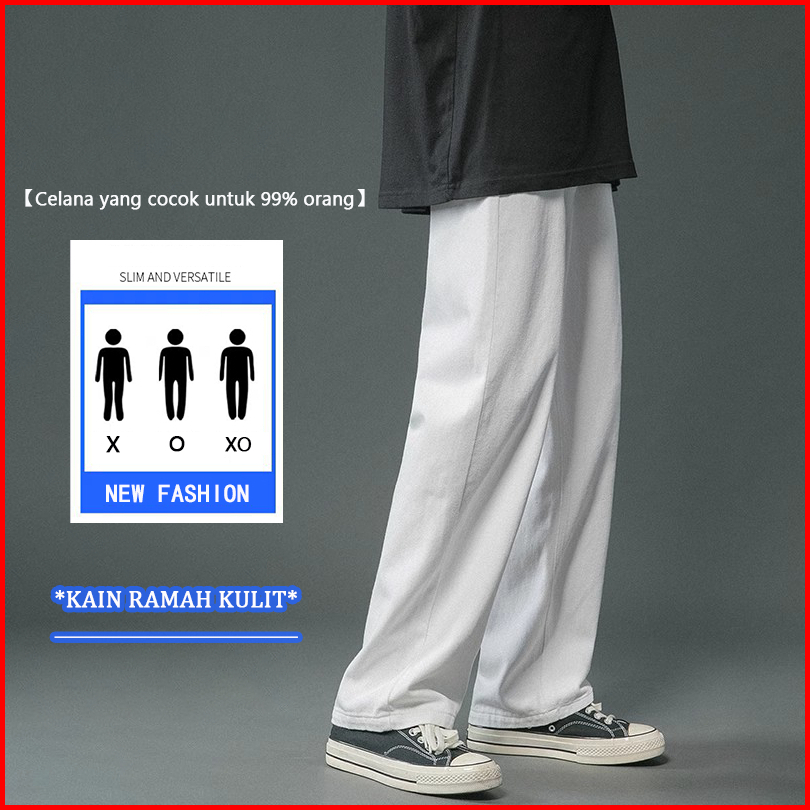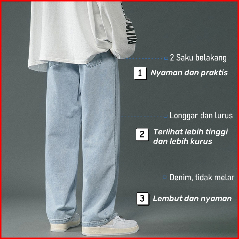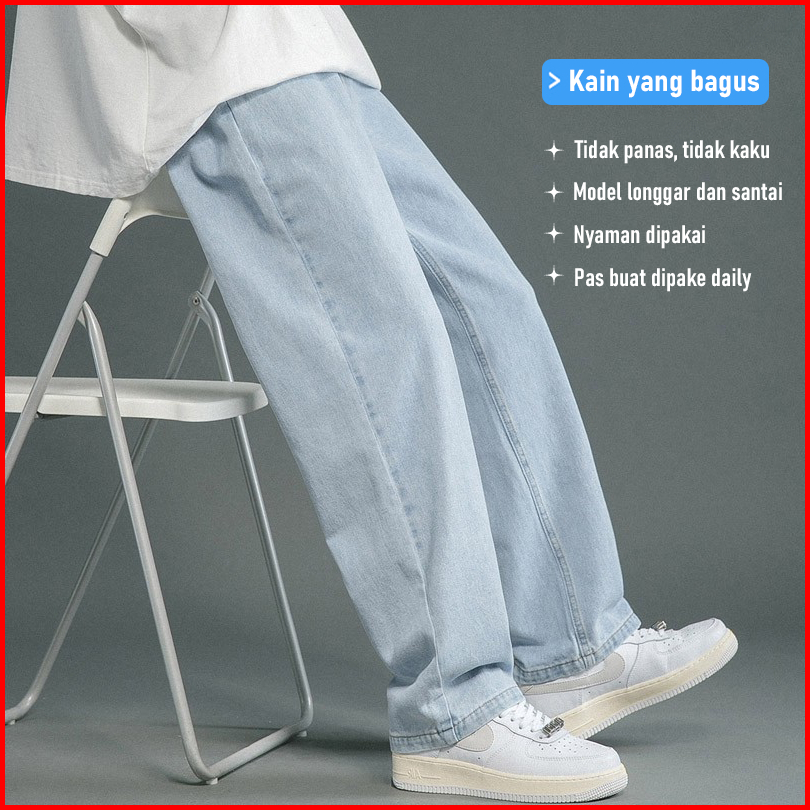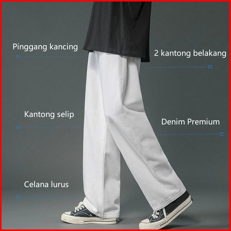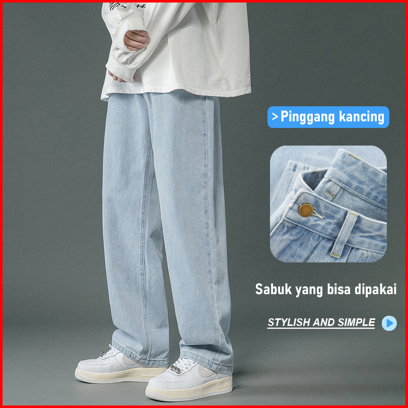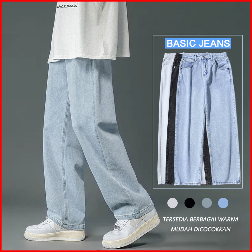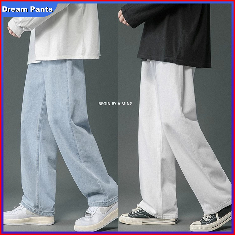 Celana Jeans Pria Baggy Celana Panjang Putih Oversize Straight Korean Style Blue Celana Kulot Jeans